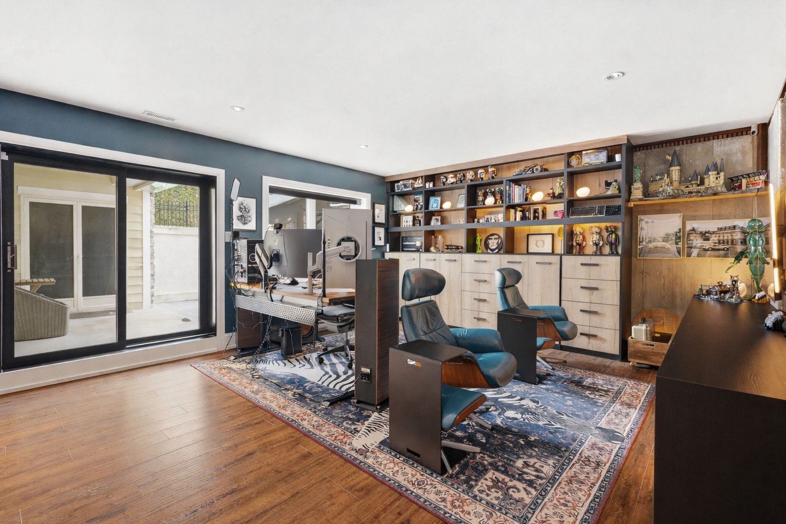 Le sous-sol propose des espaces polyvalents incluant une salle de cinéma maison, un bureau et un grand walk-in pouvant servir comme chambre également et une salle de bains avec plancher chauffant, offrant un cadre parfait pour la famille ou les invités.