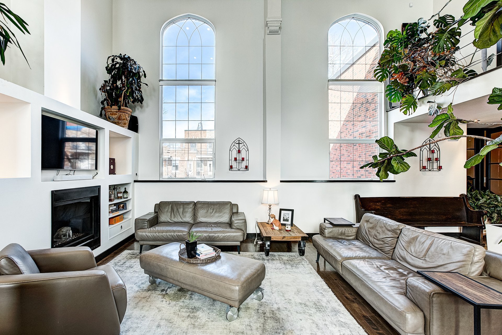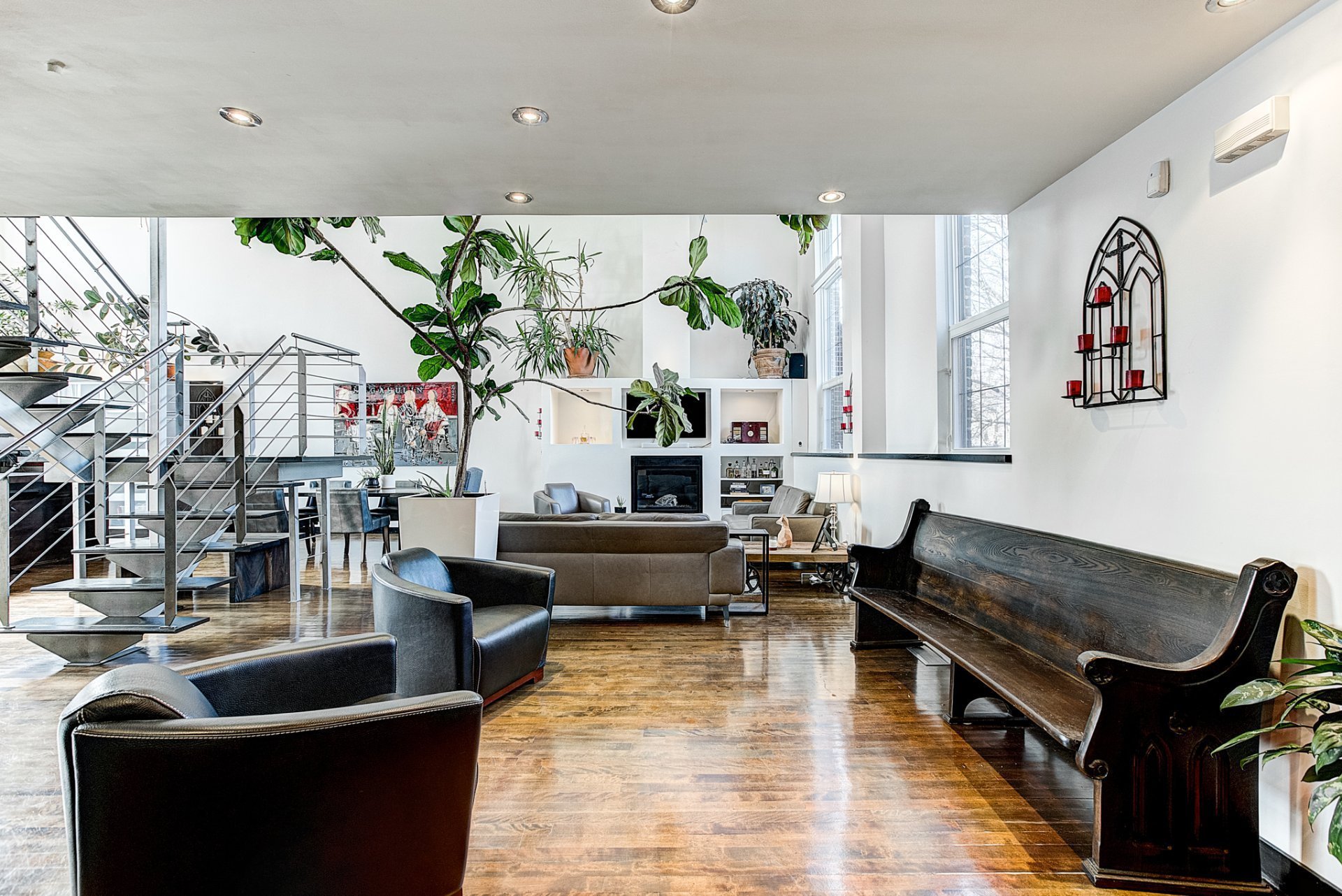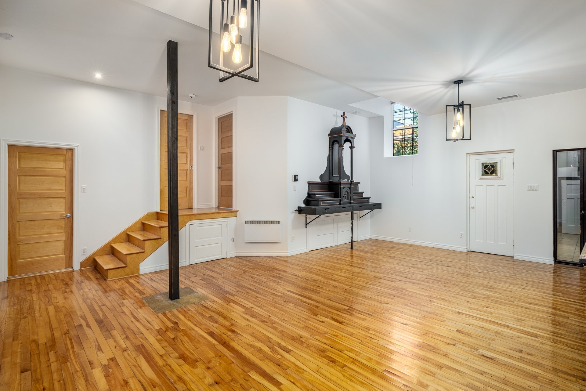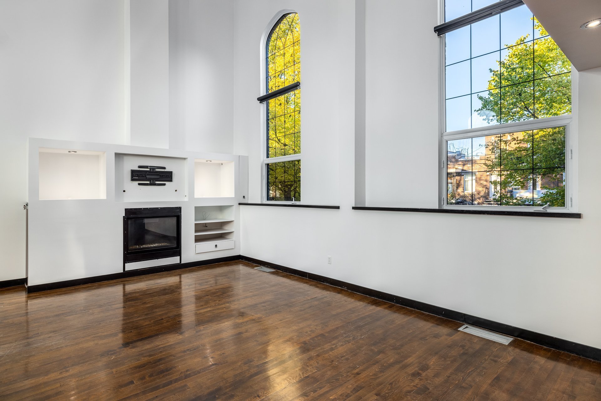 - Grandes fenêtres pointues de 12 pieds offrant un éclairage exceptionnel