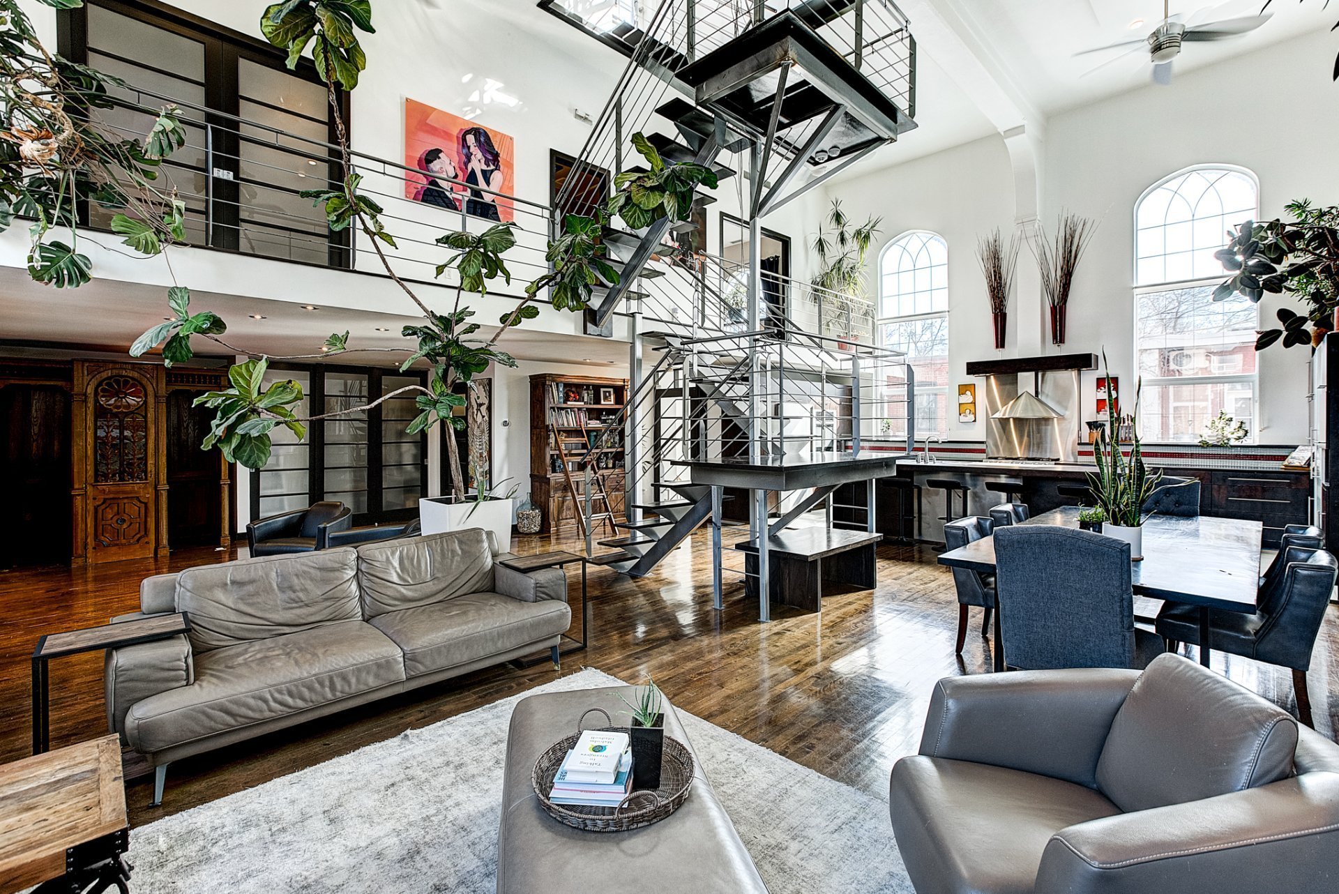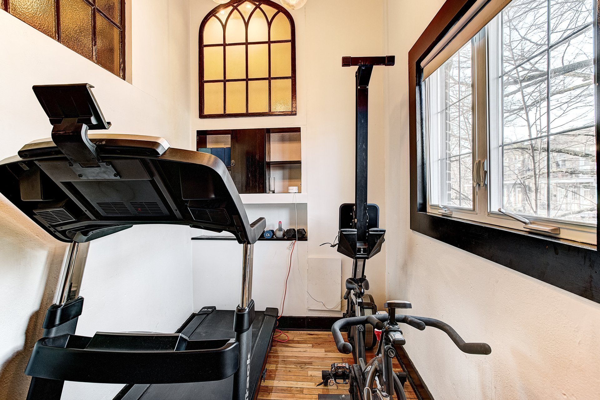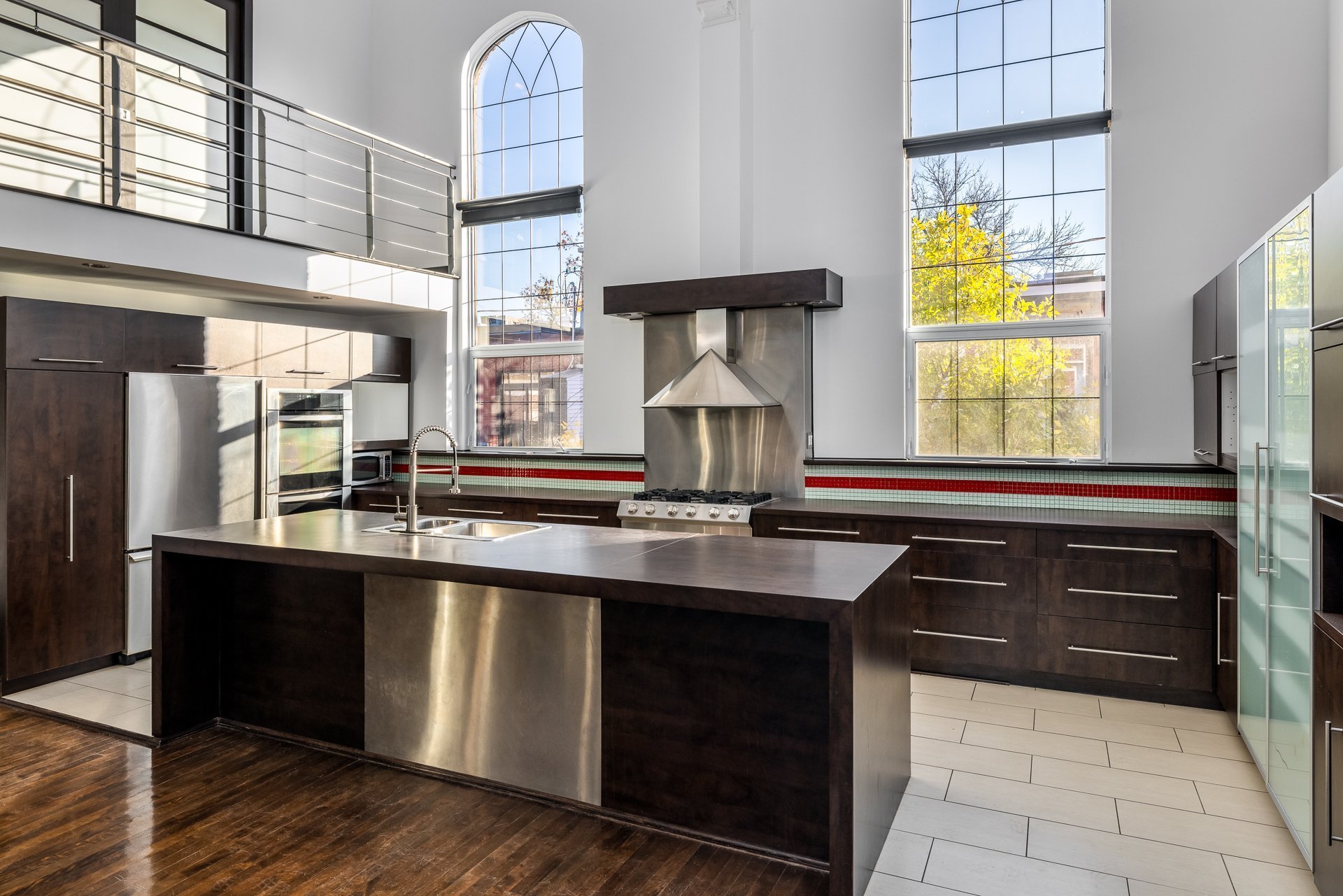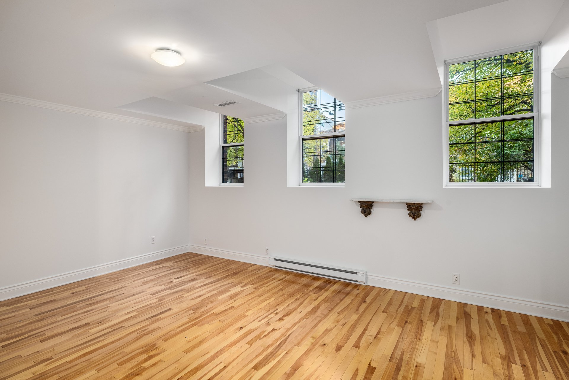 - Grandes fenêtres pointues de 12 pieds offrant un éclairage exceptionnel
