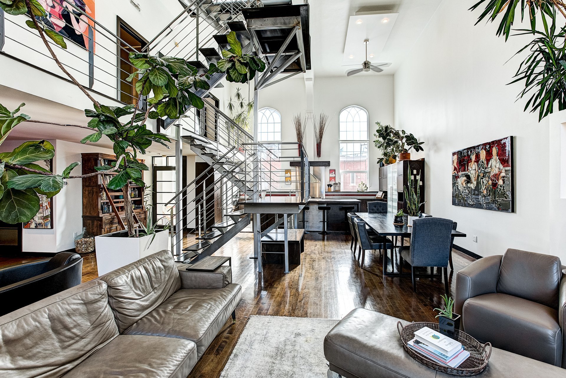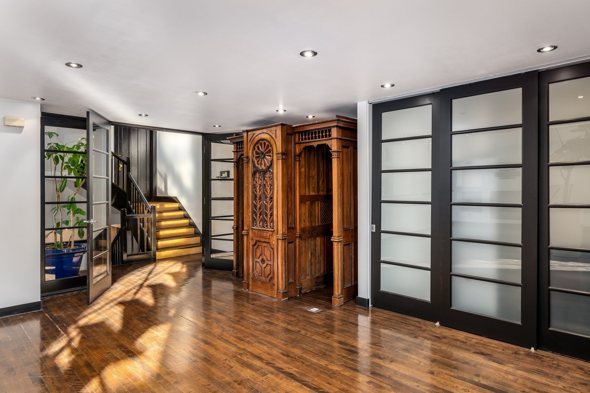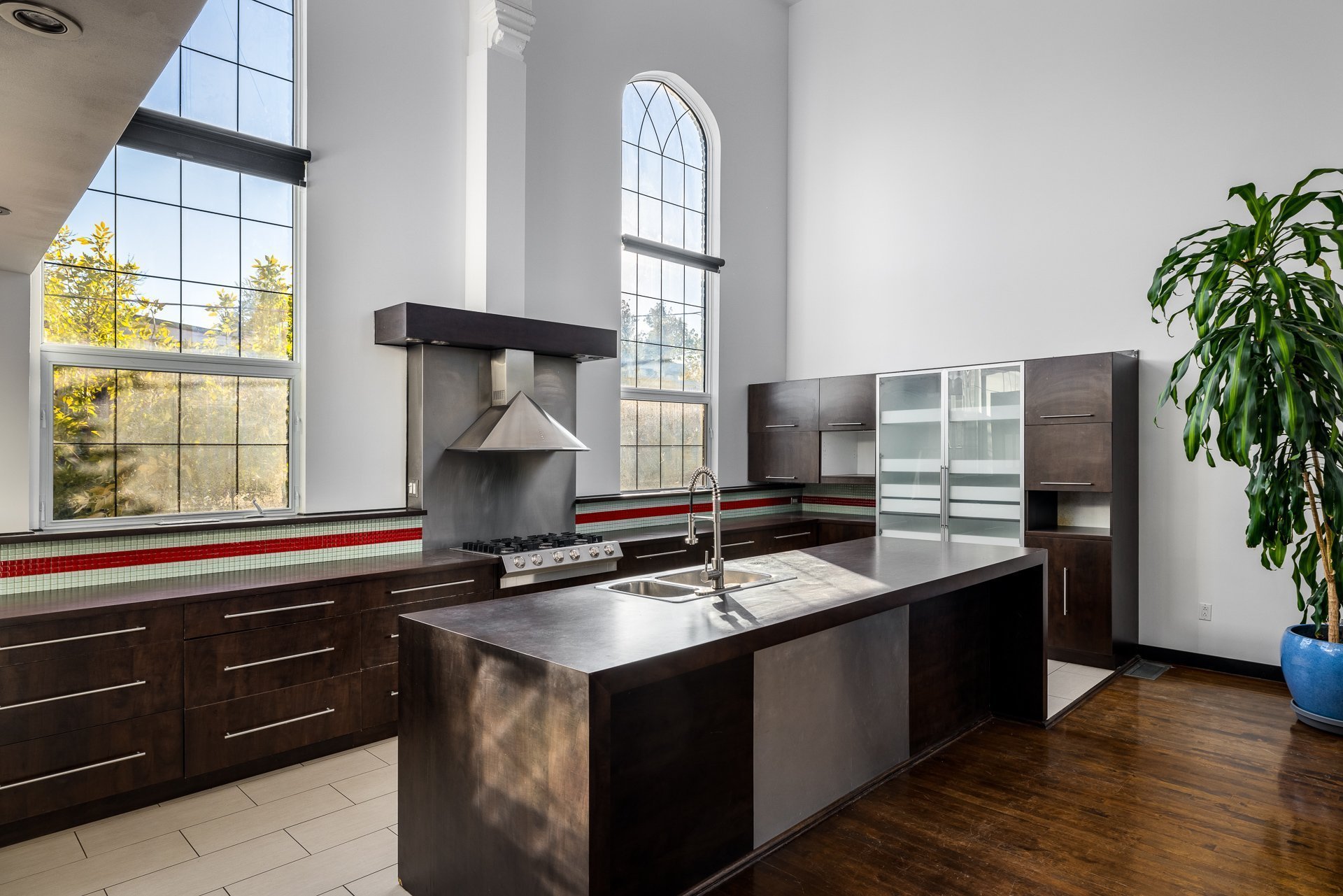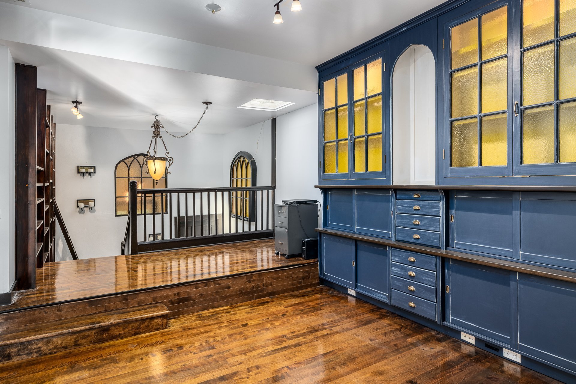 - Grandes fenêtres pointues de 12 pieds offrant un éclairage exceptionnel