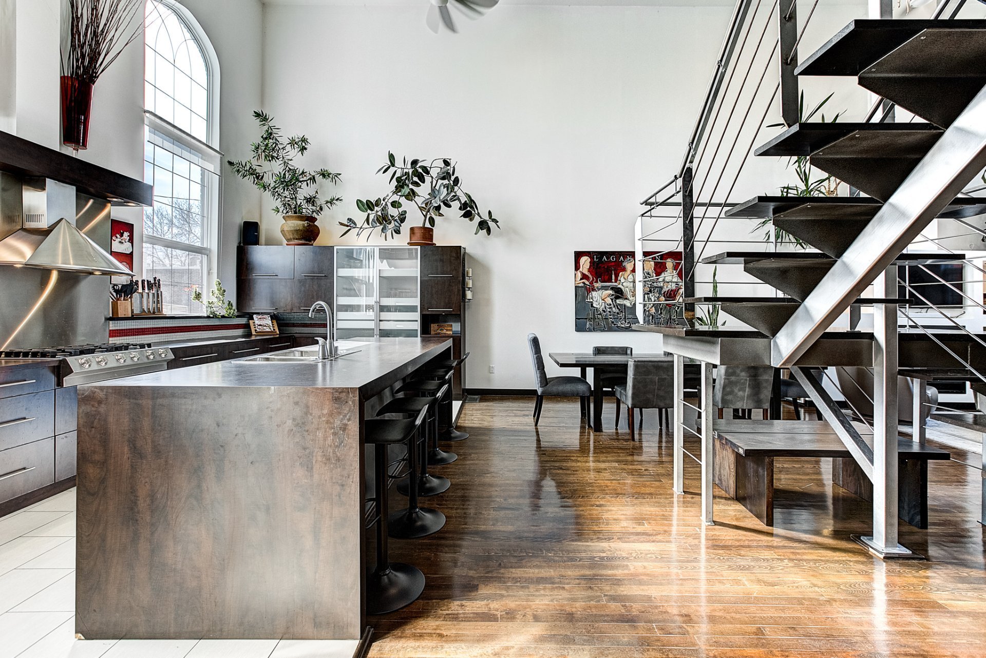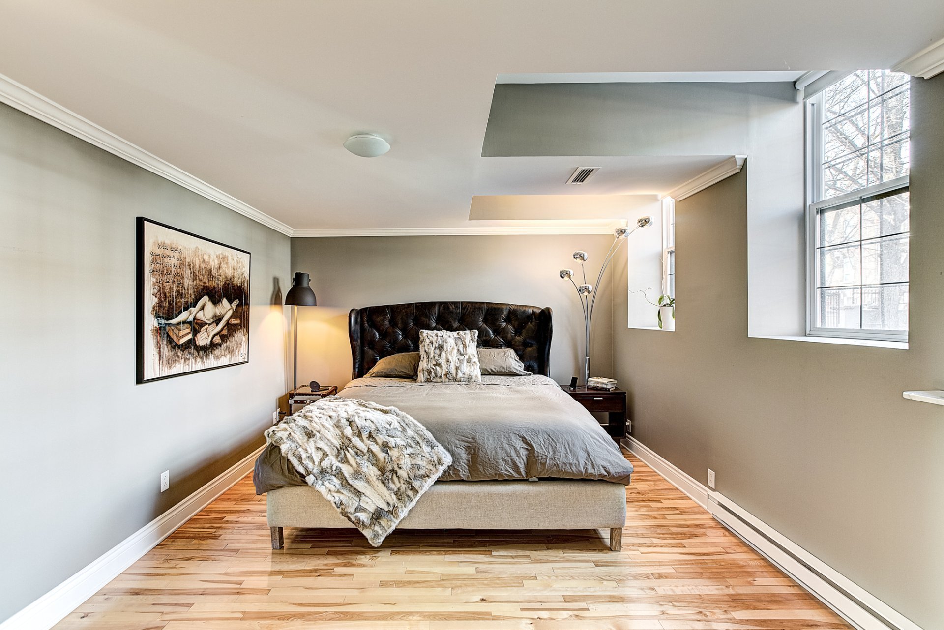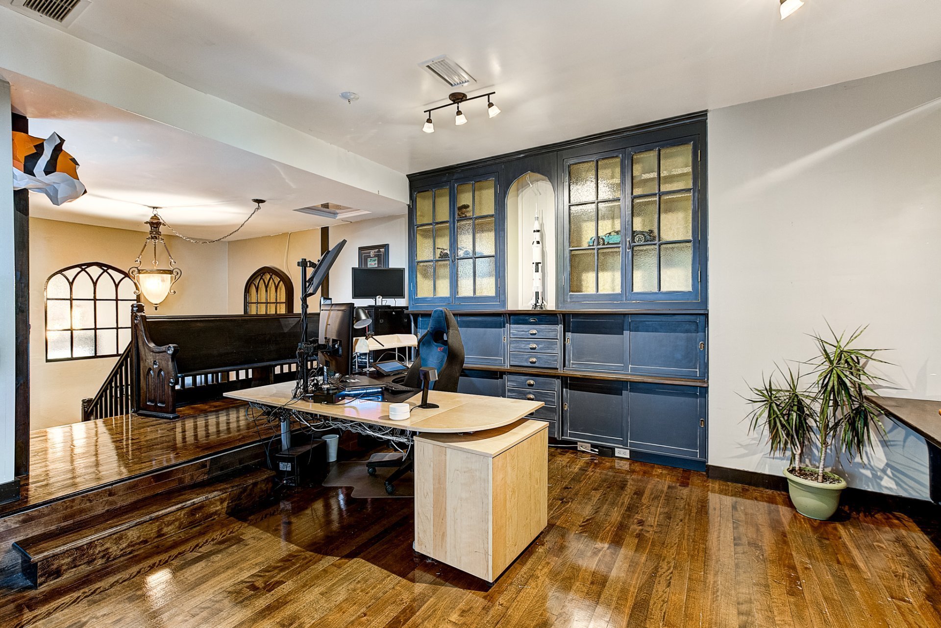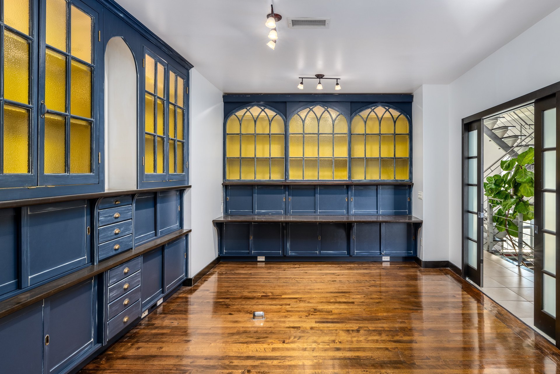 - Grandes fenêtres pointues de 12 pieds offrant un éclairage exceptionnel