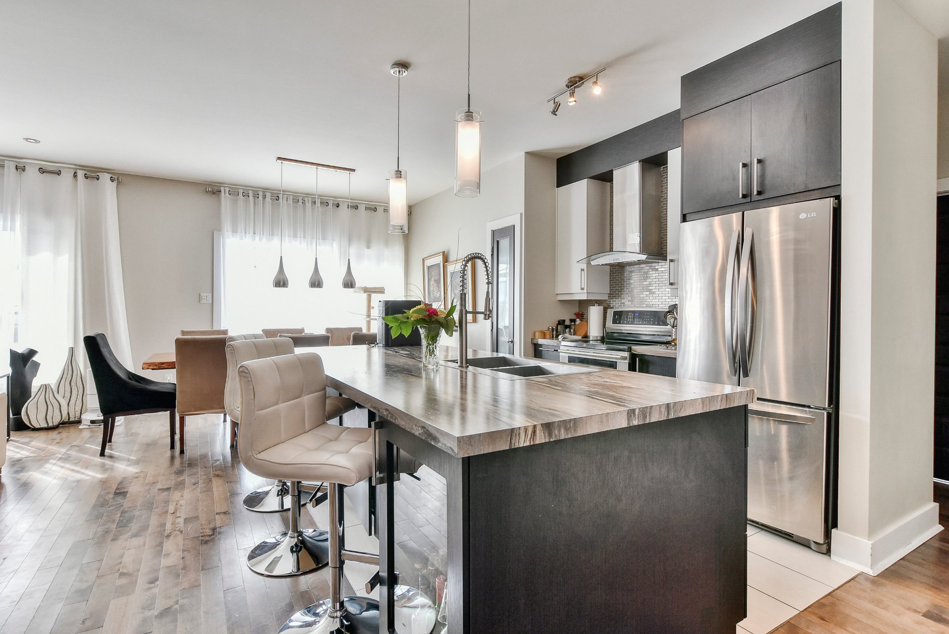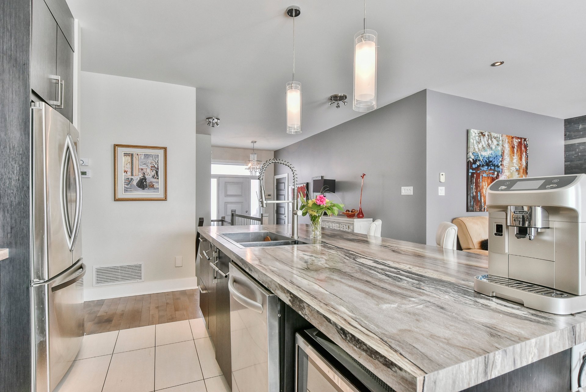 Superbe maison contemporaine avec GARAGE et intergénération dans le secteur recherché de Saint-Janvier, Mirabel. Unité principale de 1 367 pi² offrant aire ouverte lumineuse, plafonds 9 pi, cuisine avec îlot 4x8, mur en ardoise, foyer au gaz, balcon 14x14 et garage chauffé. Sous-sol aménagé avec salle familiale et possibilité d'une 3e chambre. Bachelor moderne 2 chambres (1 050 pi²) loué 1 580 $/mois. Rez-de-chaussée loué 1 680 $/mois. Terrain 57,5 x 100 pi divisé, matériaux haut de gamme. À 5 min du train et Complexe Val-d'Espoir -- idéal propriétaire-occupant ou investisseur stratégique.