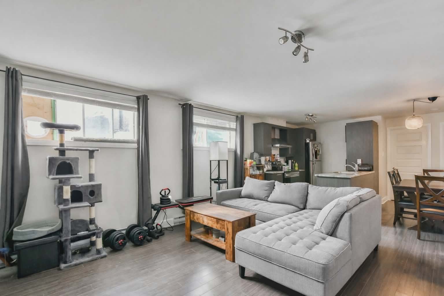 Le logement 4 ½ au sous-sol, moderne et lumineux, génère 1 580 $/mois avec occupation possible au 1er juillet.