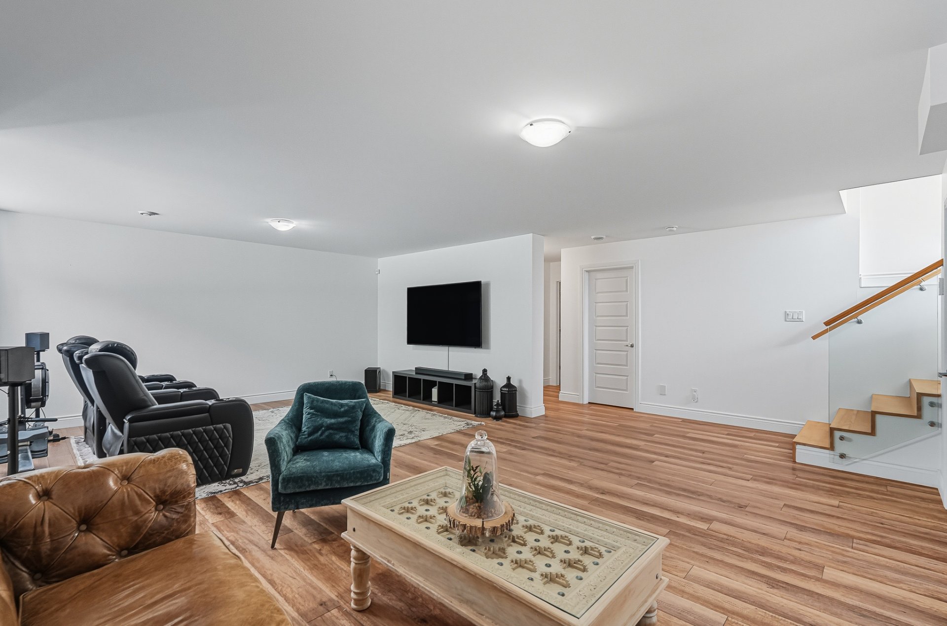 Le sous-sol entièrement aménagé ajoute deux chambres supplémentaires, une salle familiale conviviale, une salle de bain additionnelle ainsi que deux espaces de rangement pratiques.