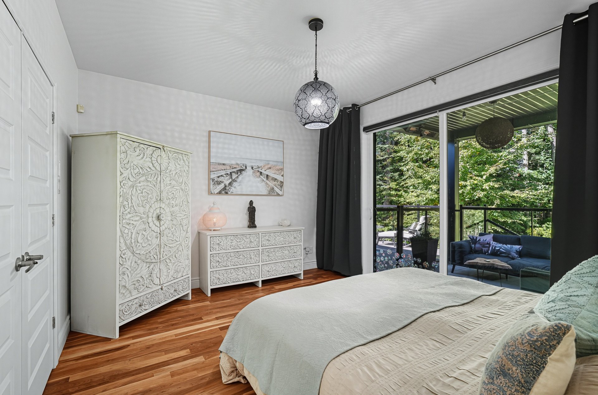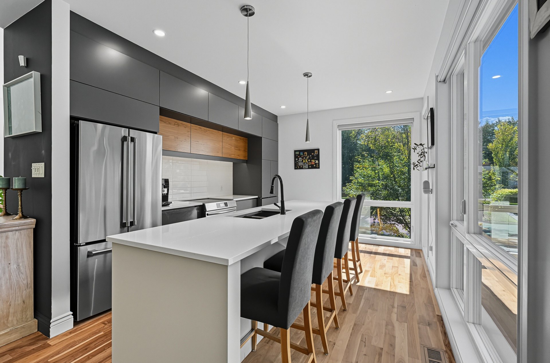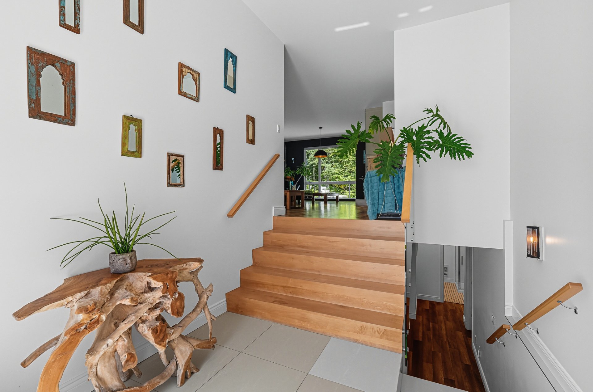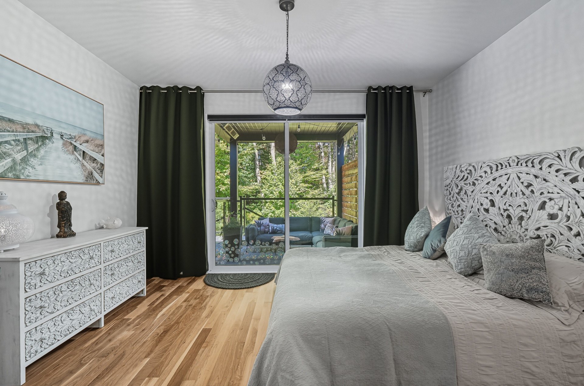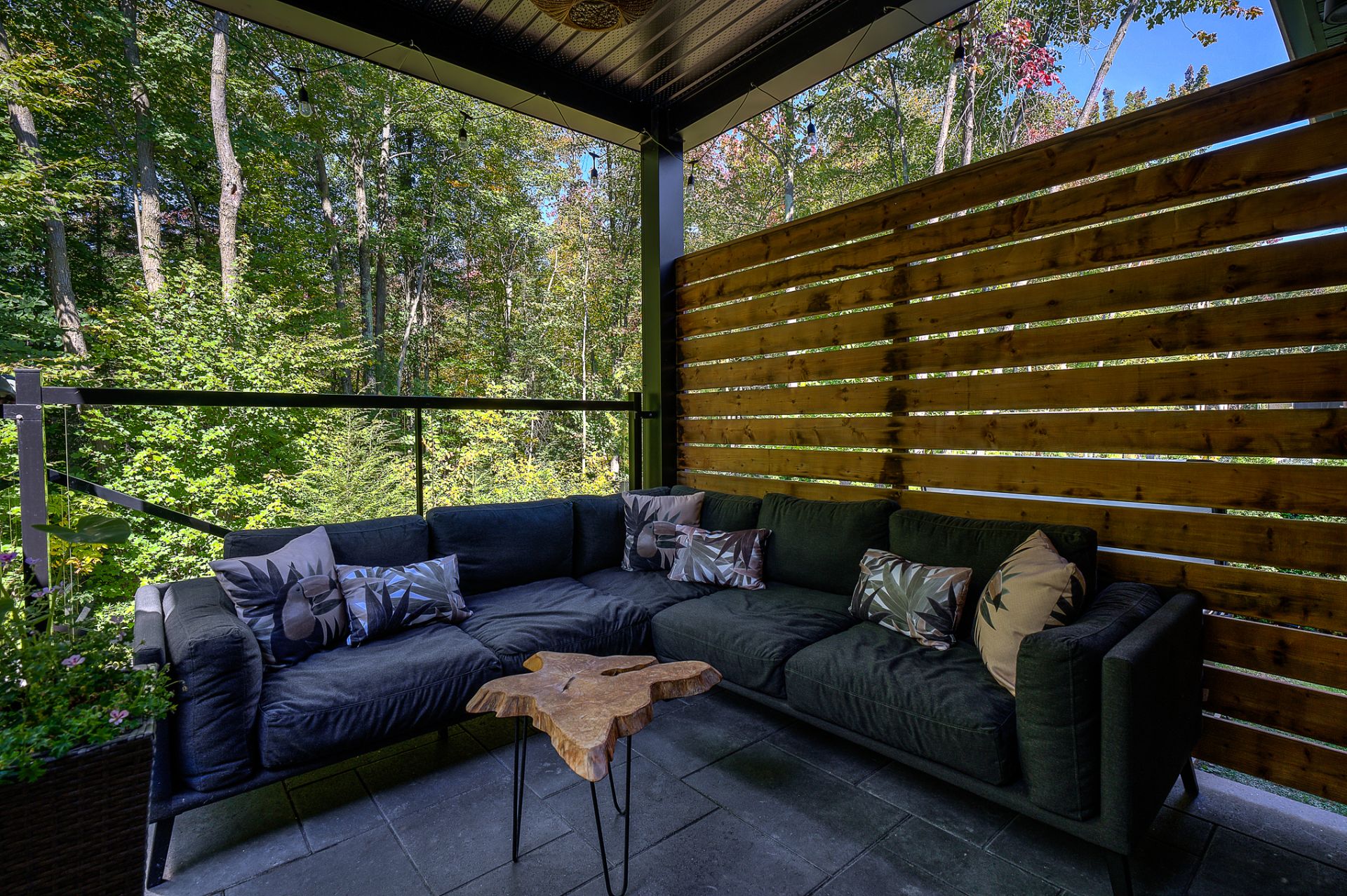 Dès votre entrée, vous serez séduit par l'abondante luminosité naturelle qui traverse les grandes fenêtres, offrant une vue panoramique sur la nature environnante. Les planchers exotiques, d'une richesse et d'un raffinement remarquables, ajoutent une touche distinctive à l'ensemble. Le rez-de-chaussée propose deux chambres à coucher, une salle de bain complète, une salle d'eau avec salle de lavage intégrée et une superbe cuisine au design raffiné, ouverte sur un salon chaleureux avec foyer au gaz. La chambre principale s'ouvre directement sur une terrasse intime, idéale pour profiter des soirées paisibles.