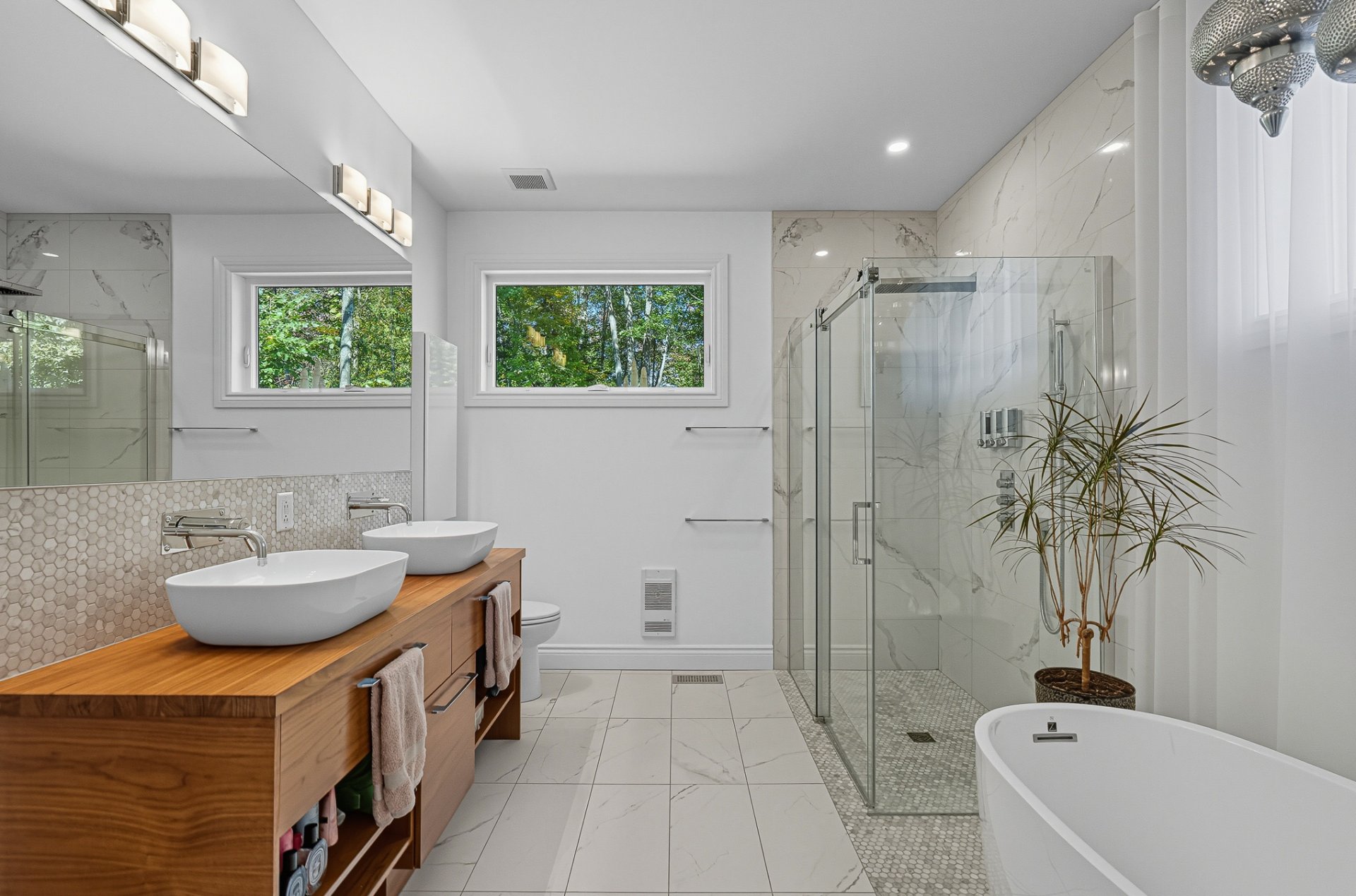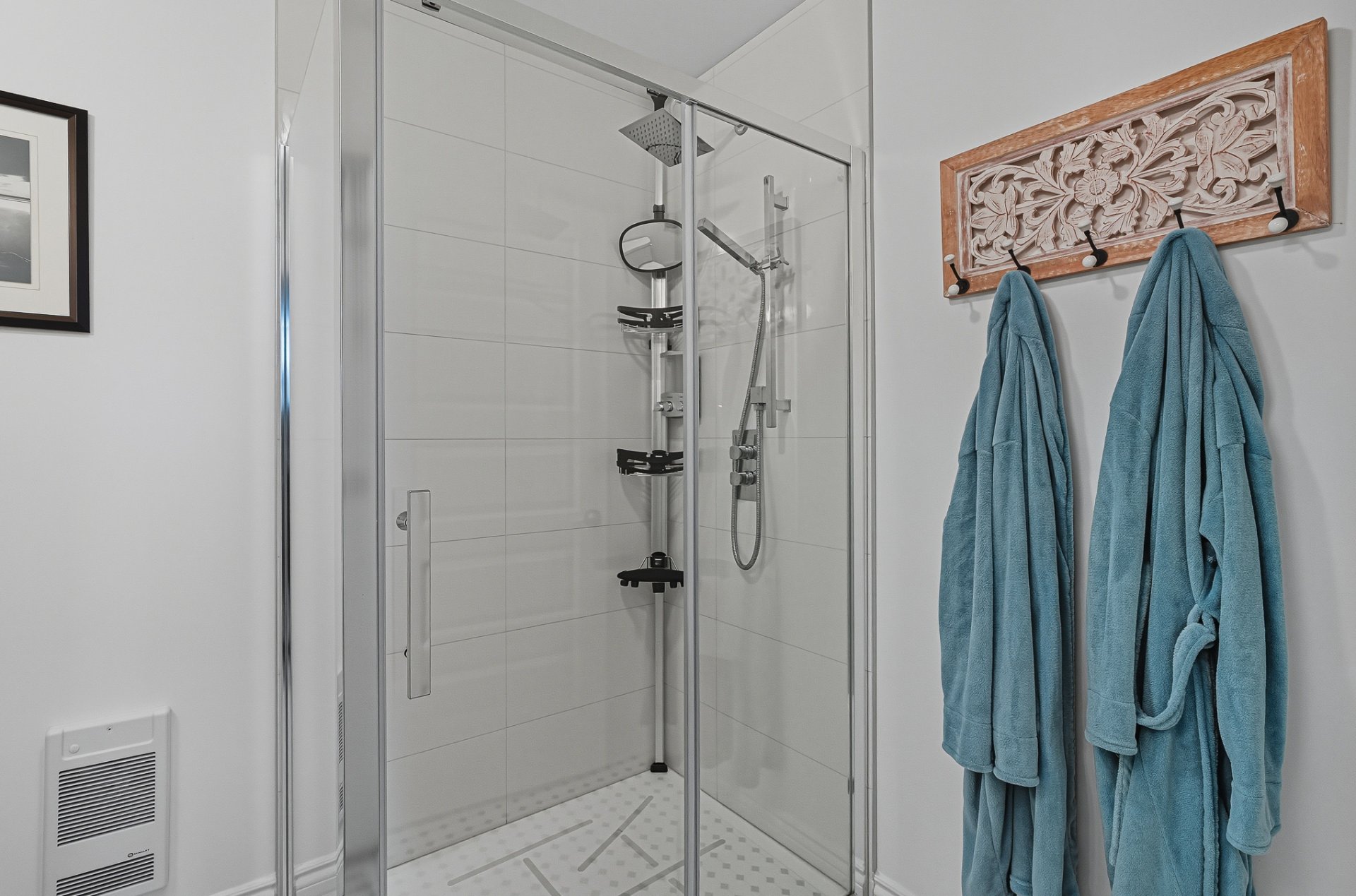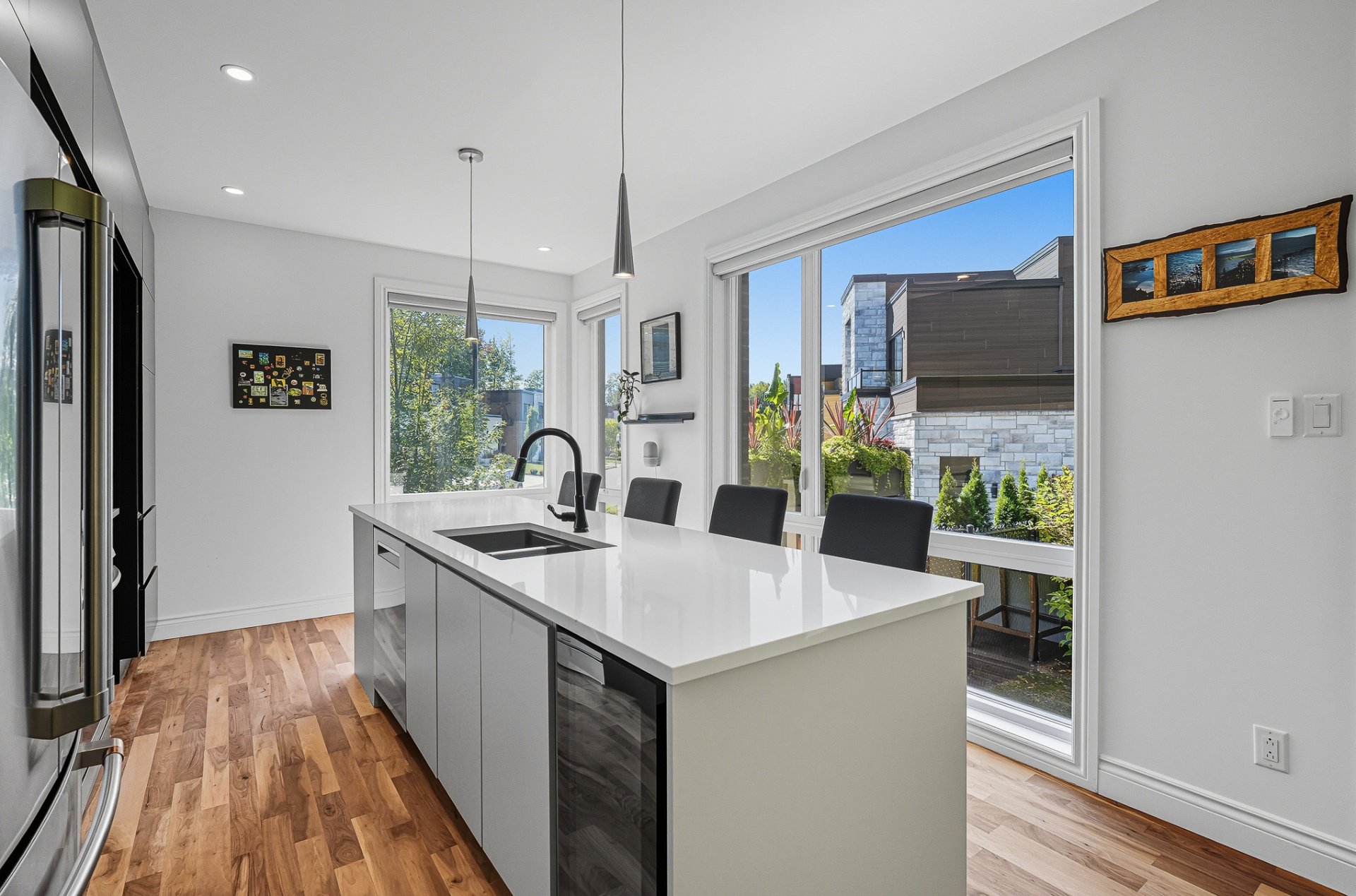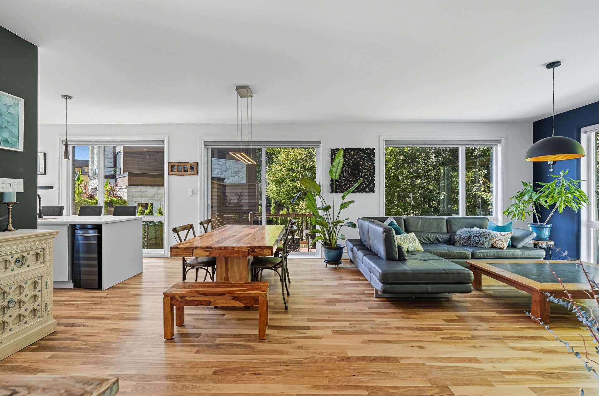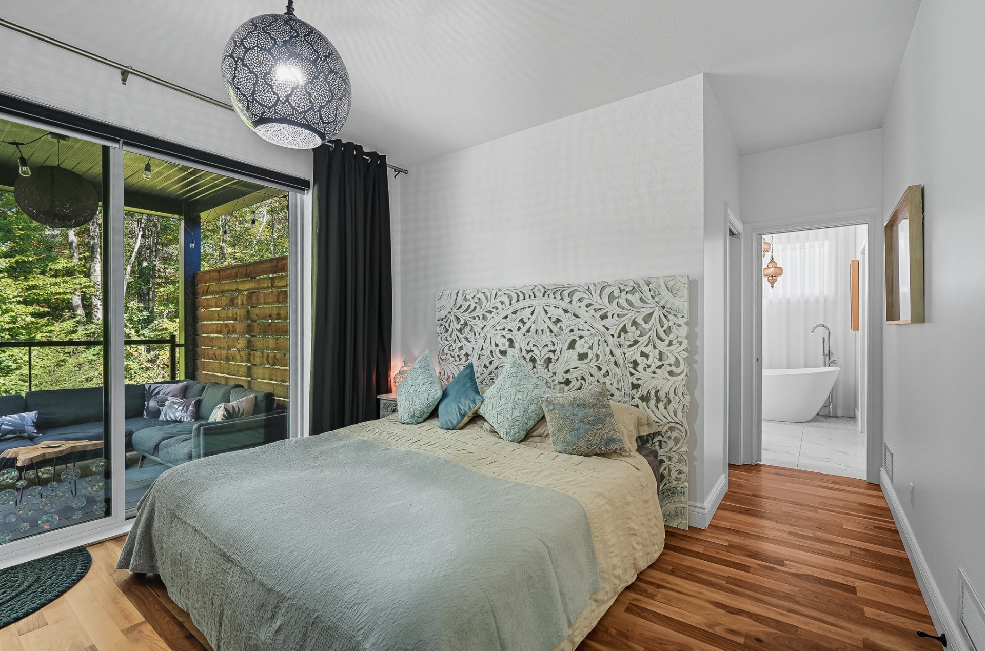 Dès votre entrée, vous serez séduit par l'abondante luminosité naturelle qui traverse les grandes fenêtres, offrant une vue panoramique sur la nature environnante. Les planchers exotiques, d'une richesse et d'un raffinement remarquables, ajoutent une touche distinctive à l'ensemble. Le rez-de-chaussée propose deux chambres à coucher, une salle de bain complète, une salle d'eau avec salle de lavage intégrée et une superbe cuisine au design raffiné, ouverte sur un salon chaleureux avec foyer au gaz. La chambre principale s'ouvre directement sur une terrasse intime, idéale pour profiter des soirées paisibles.
