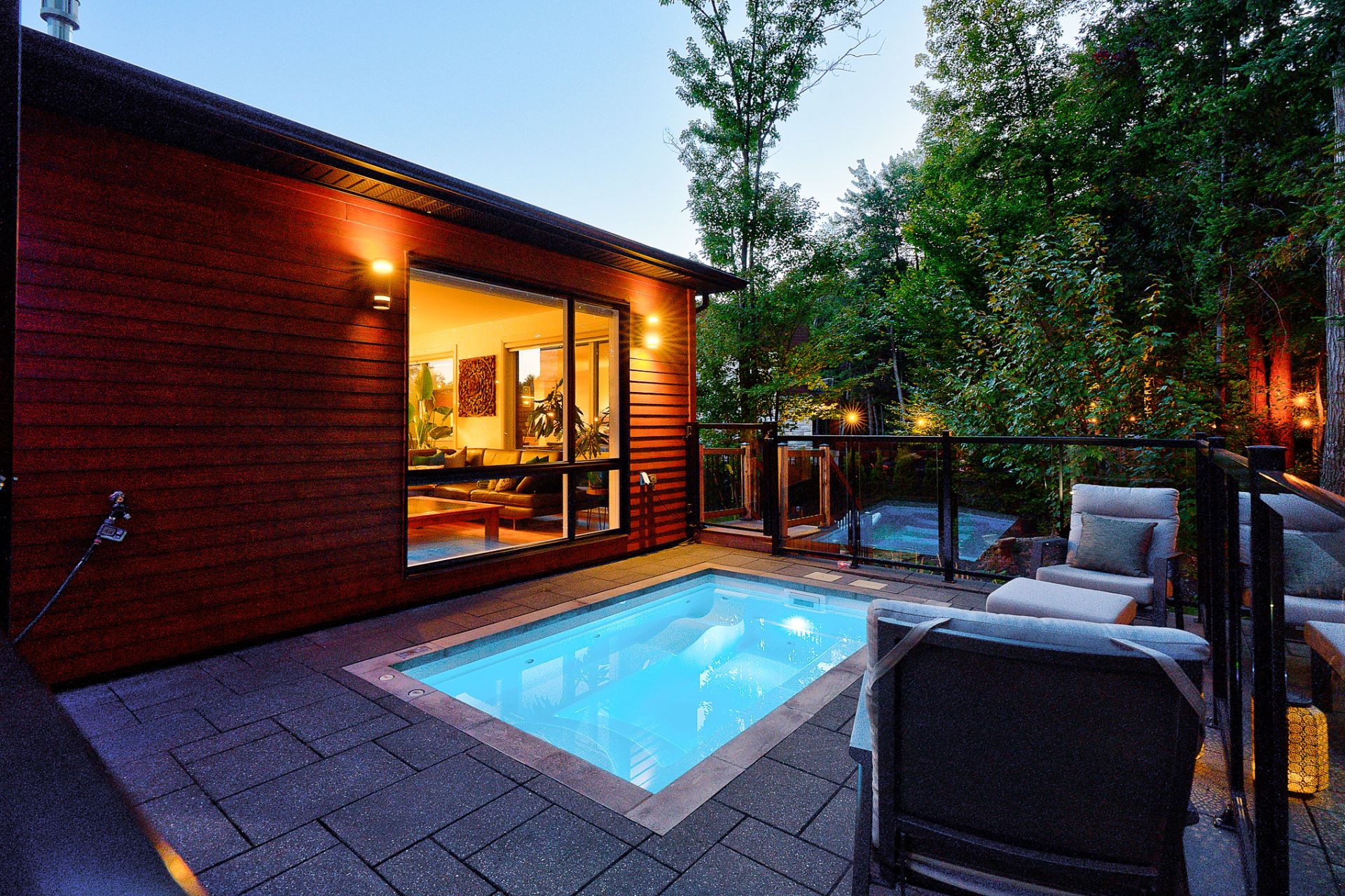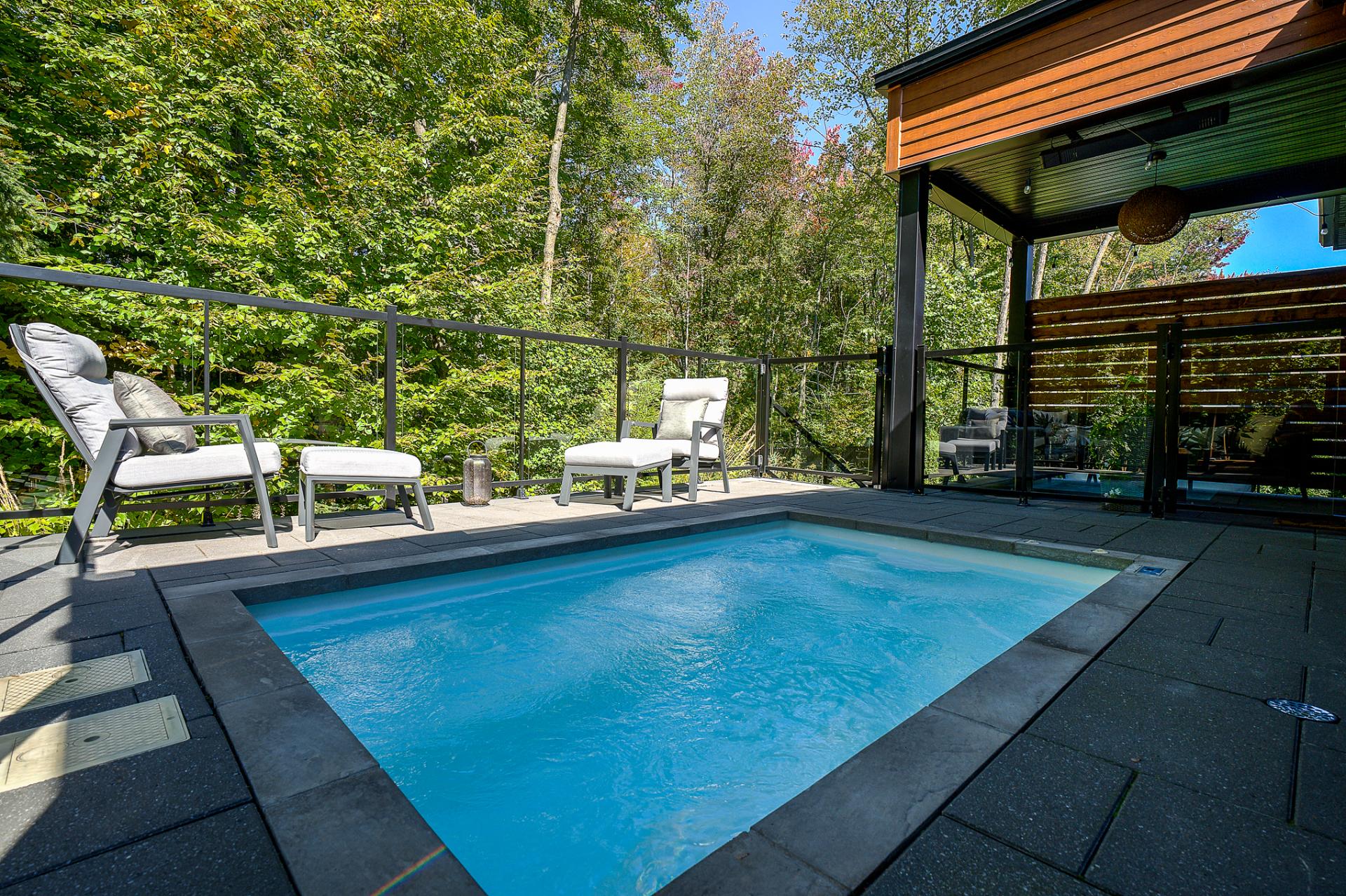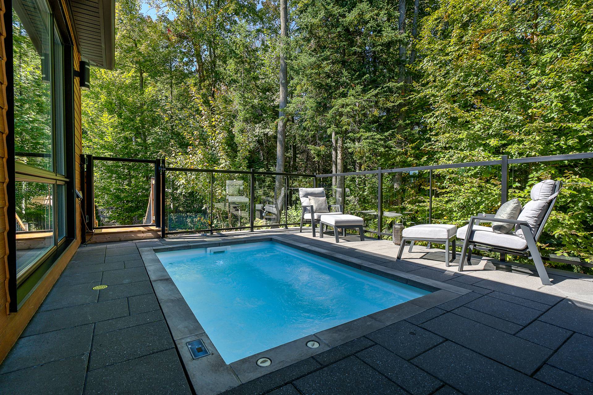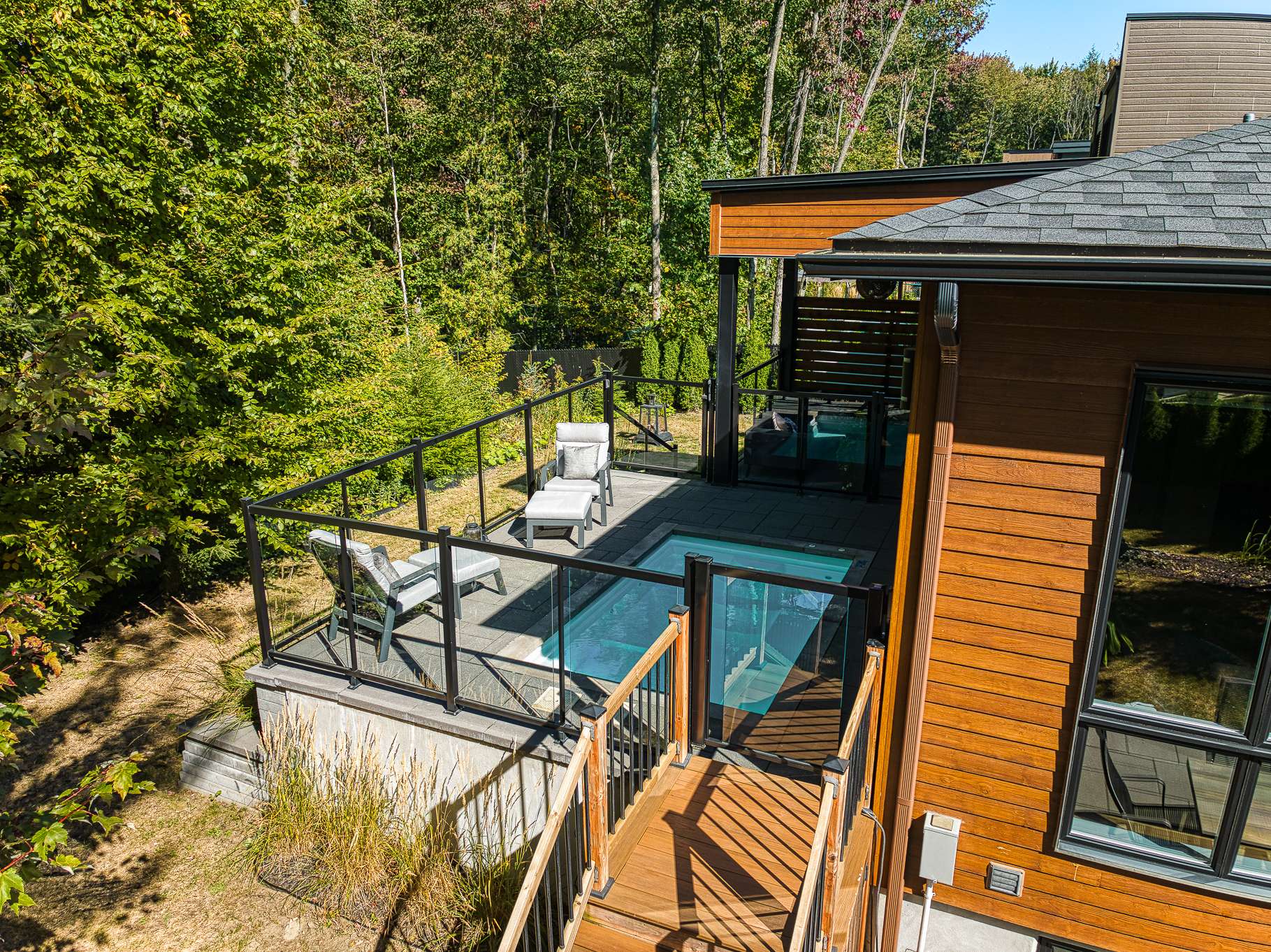 À l'extérieur, l'emplacement et le terrain volent la vedette : boisé, aménagé et sans voisin à l'arrière, il promet une sérénité incomparable. La piscine chauffée hybride, installée sur la terrasse, permet de profiter des plaisirs de la baignade en toutes saisons.