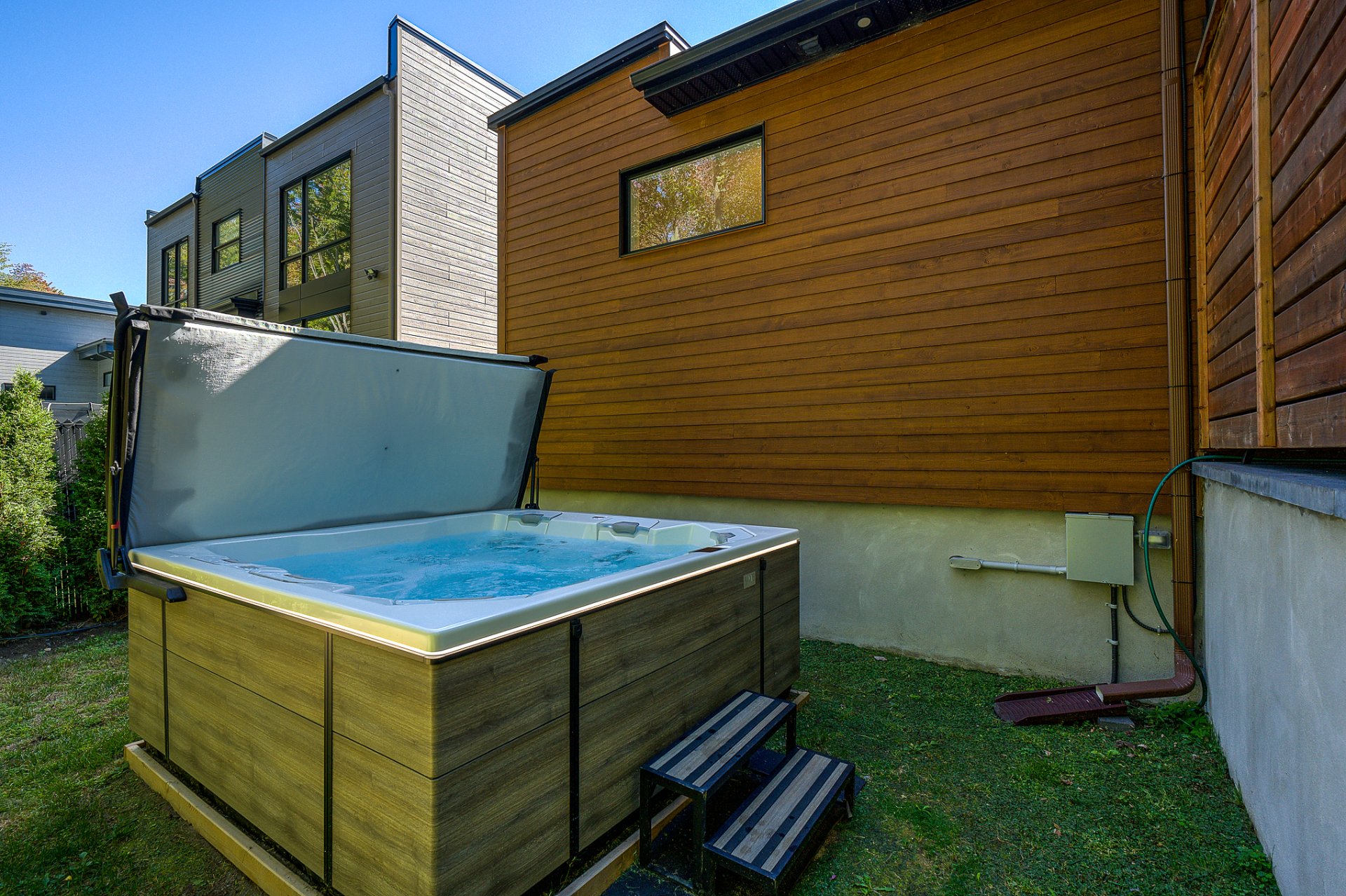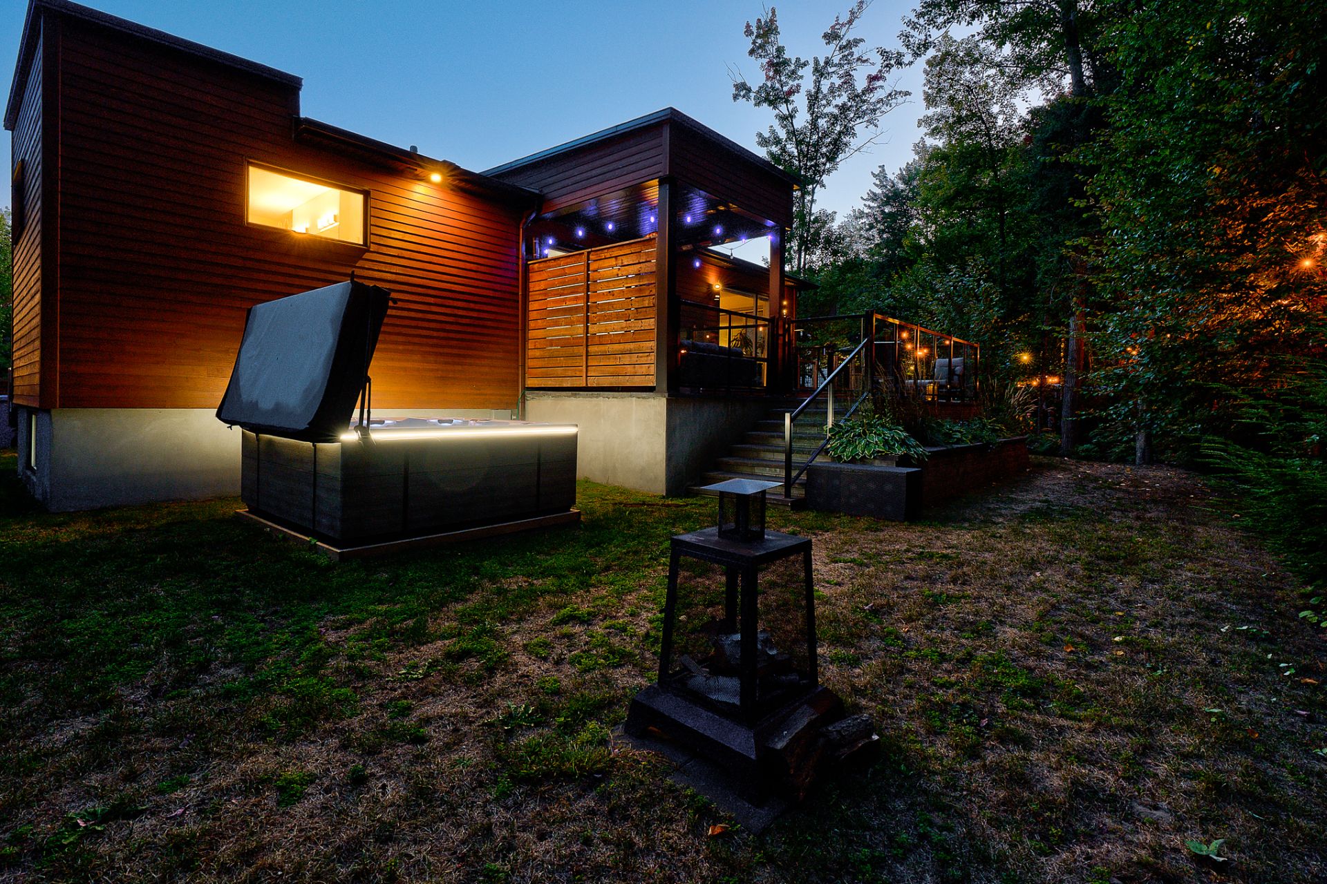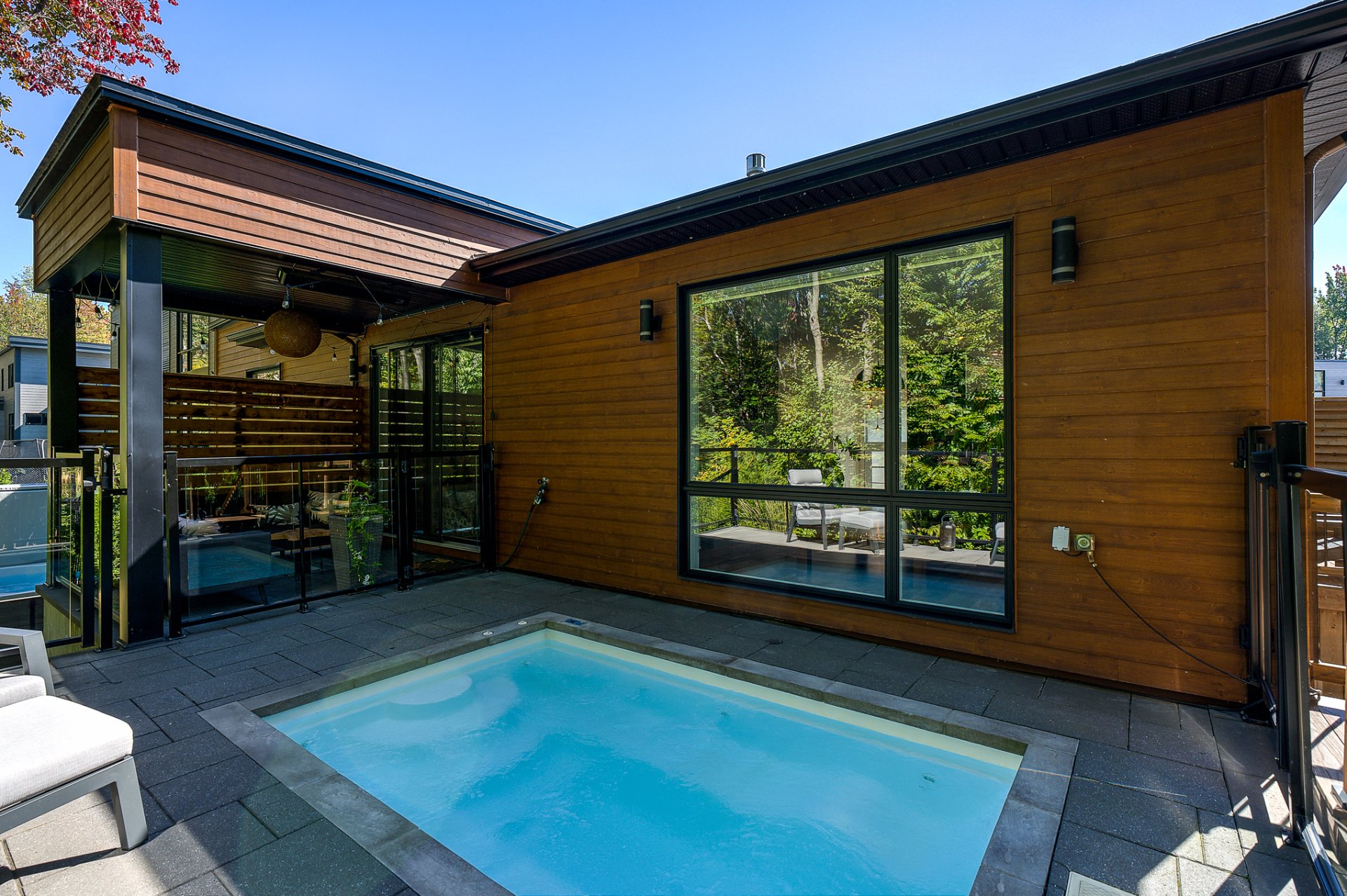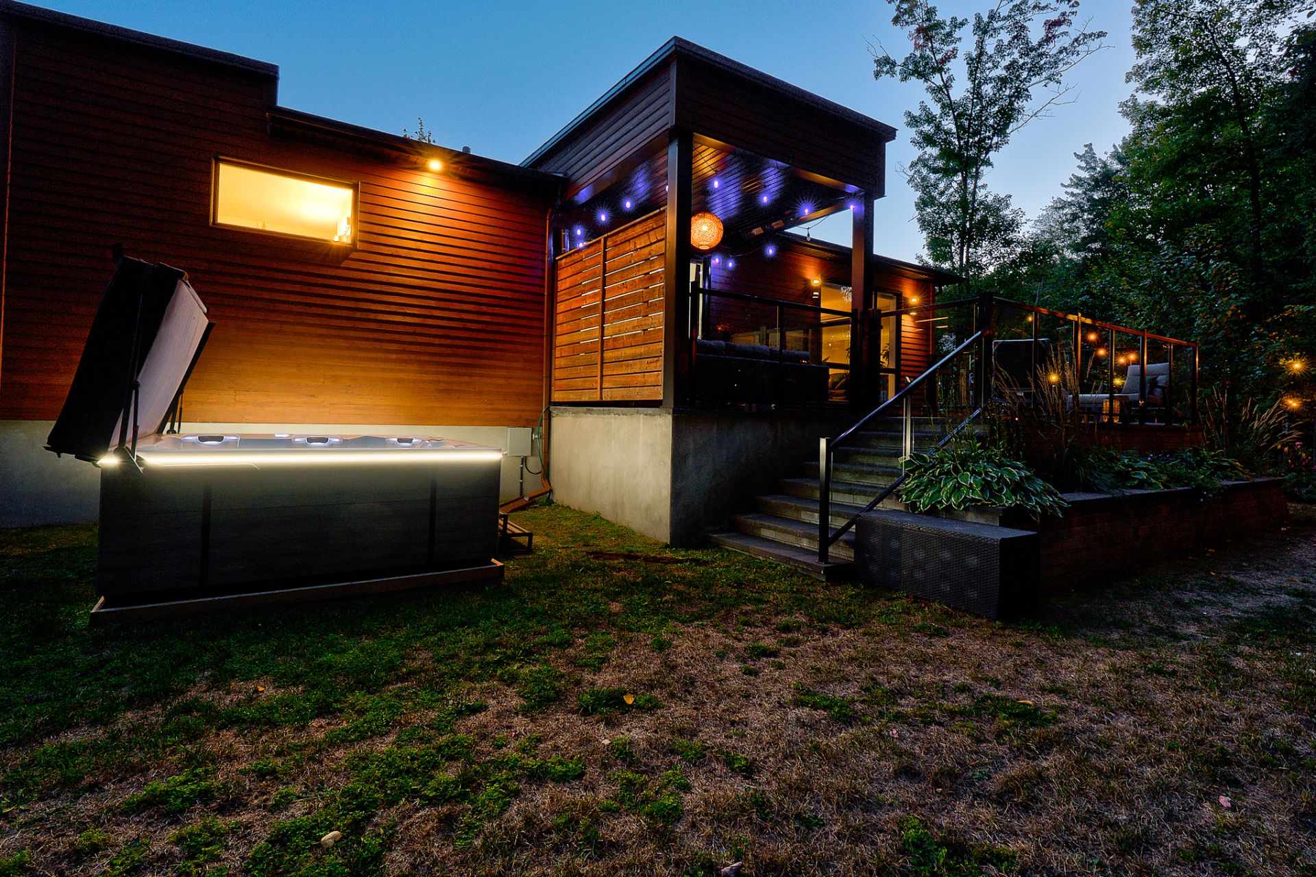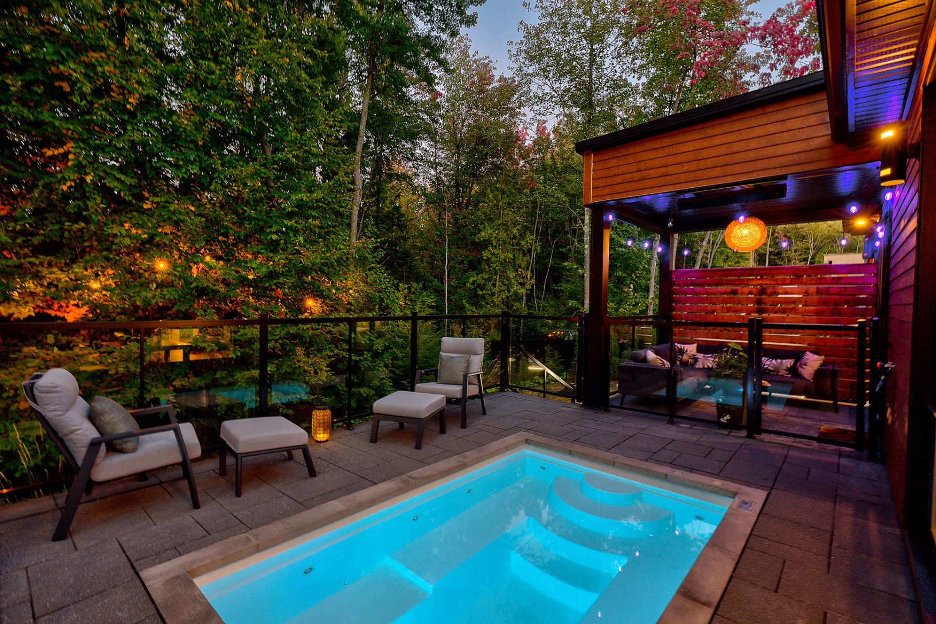 À l'extérieur, l'emplacement et le terrain volent la vedette : boisé, aménagé et sans voisin à l'arrière, il promet une sérénité incomparable. La piscine chauffée hybride, installée sur la terrasse, permet de profiter des plaisirs de la baignade en toutes saisons.