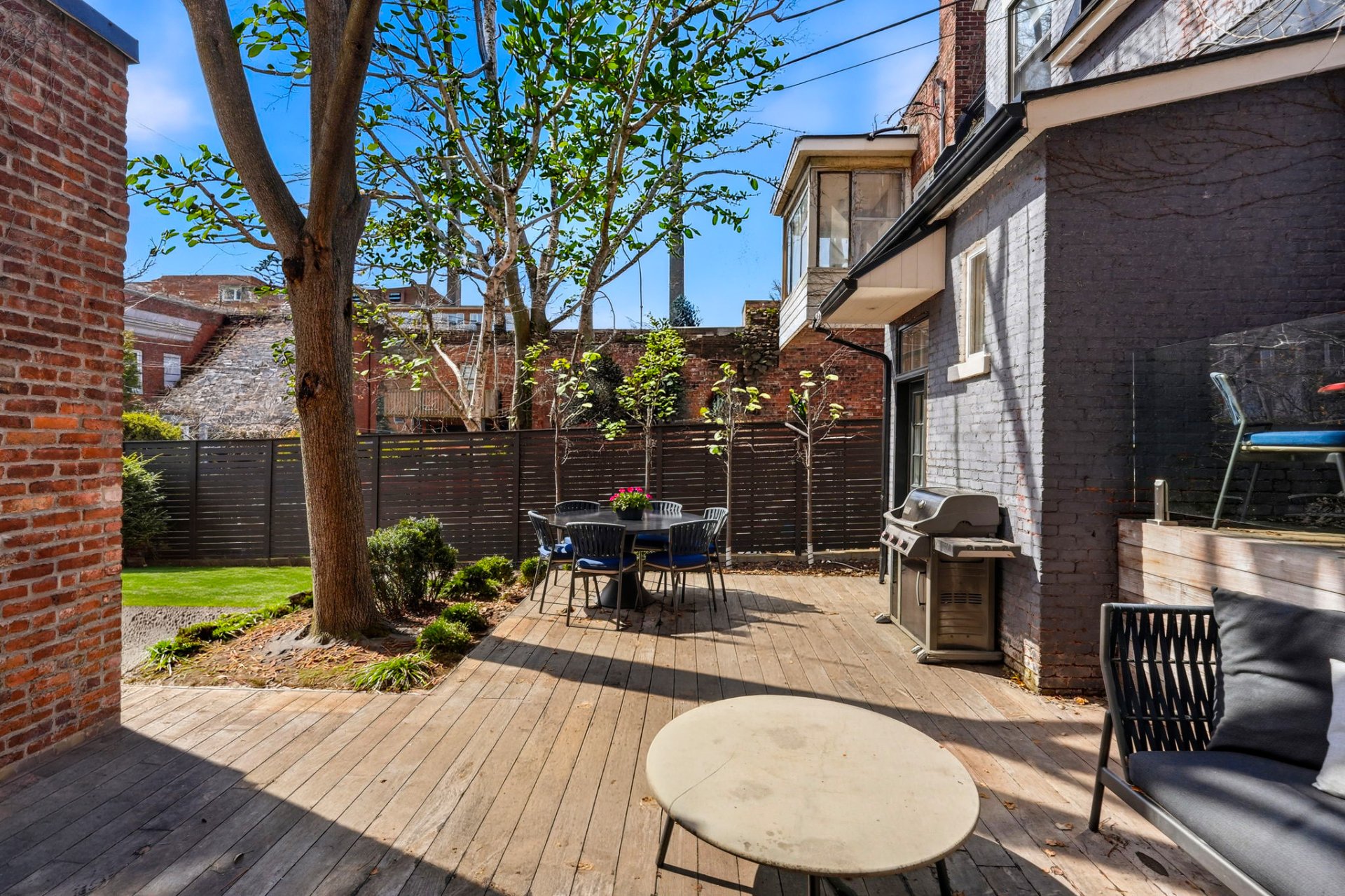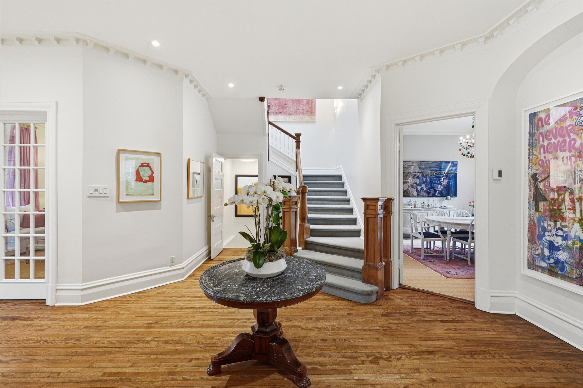 « On the flats », résidence au charme extérieur indéniable avec son élégante galerie couverte. Dès les premières secondes, elle impose sa signature avec un hall central spectaculaire et parfaitement proportionné--véritable coeur de la maison. Ce plan classique et recherché offre une distribution harmonieuse des pièces, idéale pour recevoir avec aisance. Cuisine haut de gamme avec coin lecture et butler's pantry et salle à manger d'une grande élégance. Sublime jardin de ville aménagé signé Stuart Webster. Chambres généreuses, salle de bains luxueuse avec bain et douche séparée, sous-sol entièrement aménagé. Stationnement... et oui, un garage!