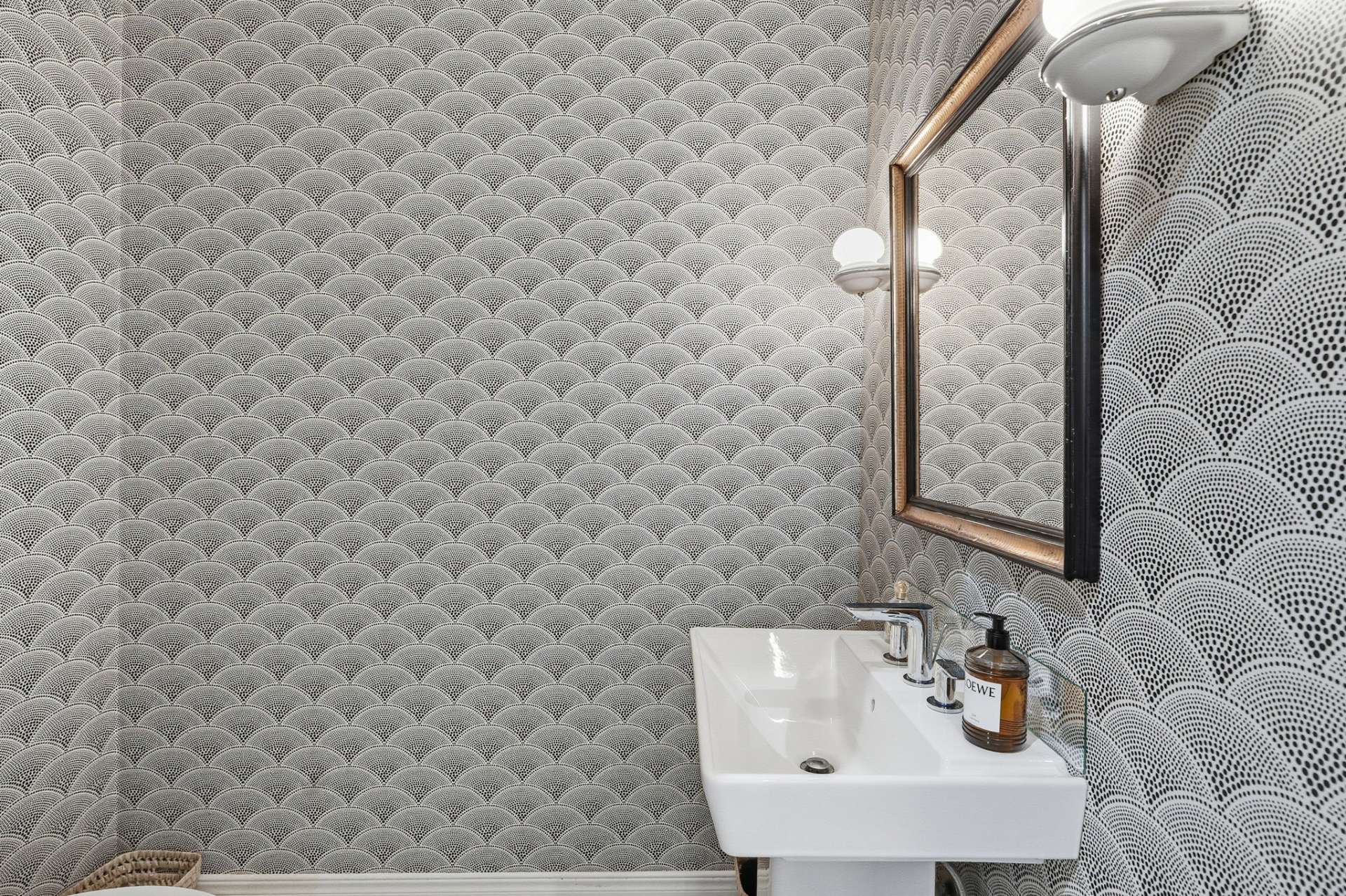 - Chandelier de la salle à manger et luminaires du vestibule et de la chambre principale. Miroir de la salle d'eau.