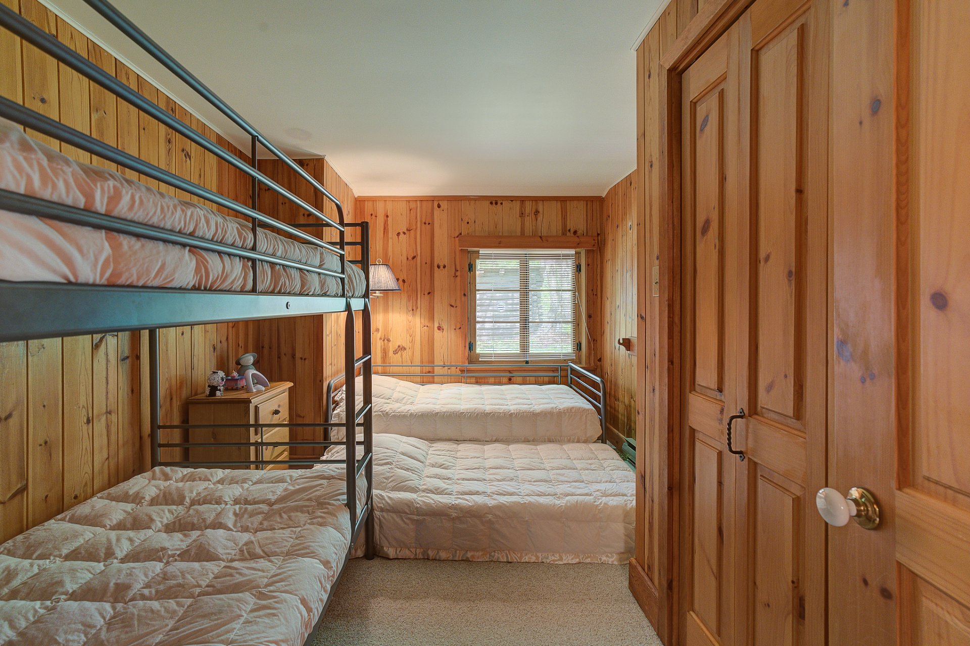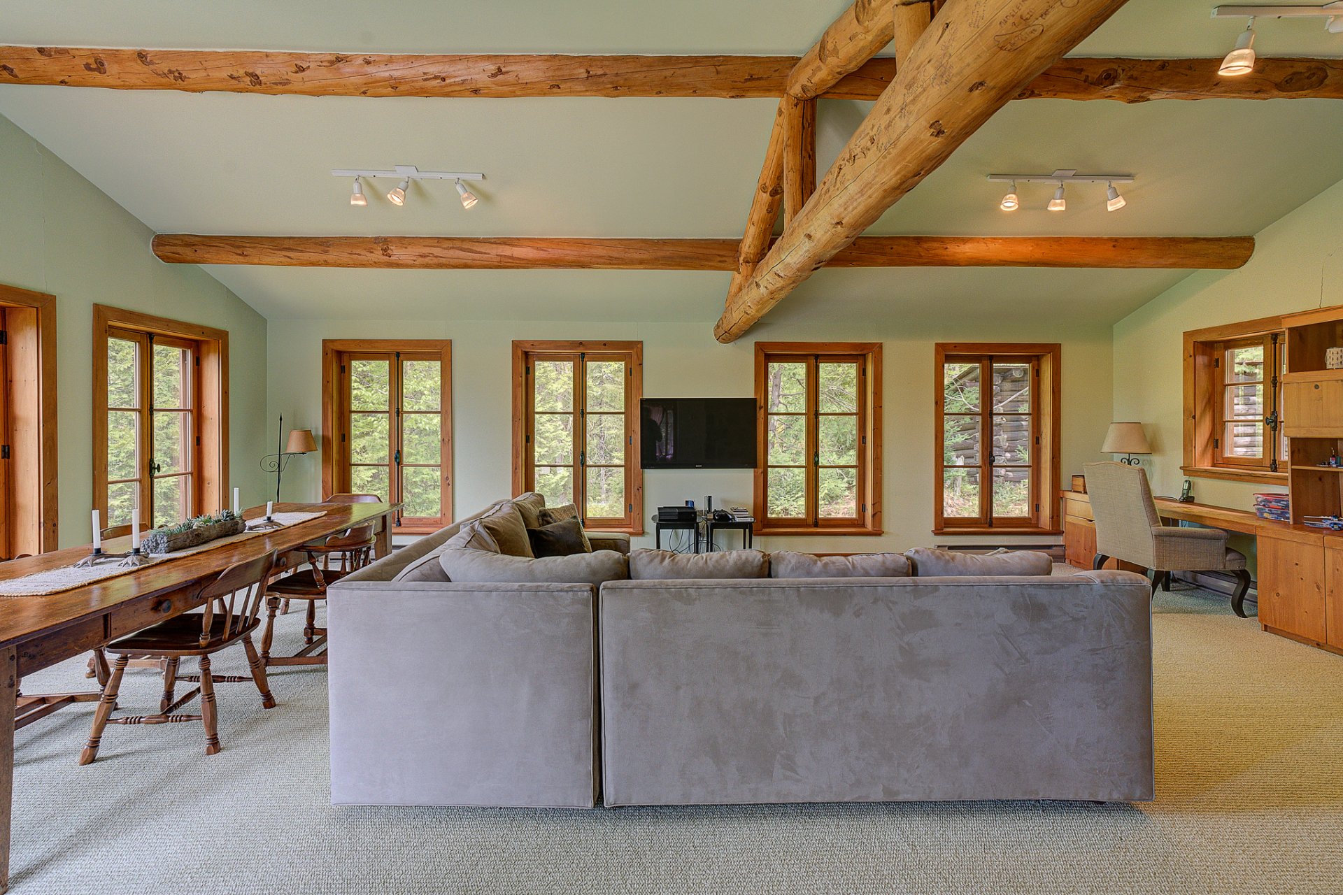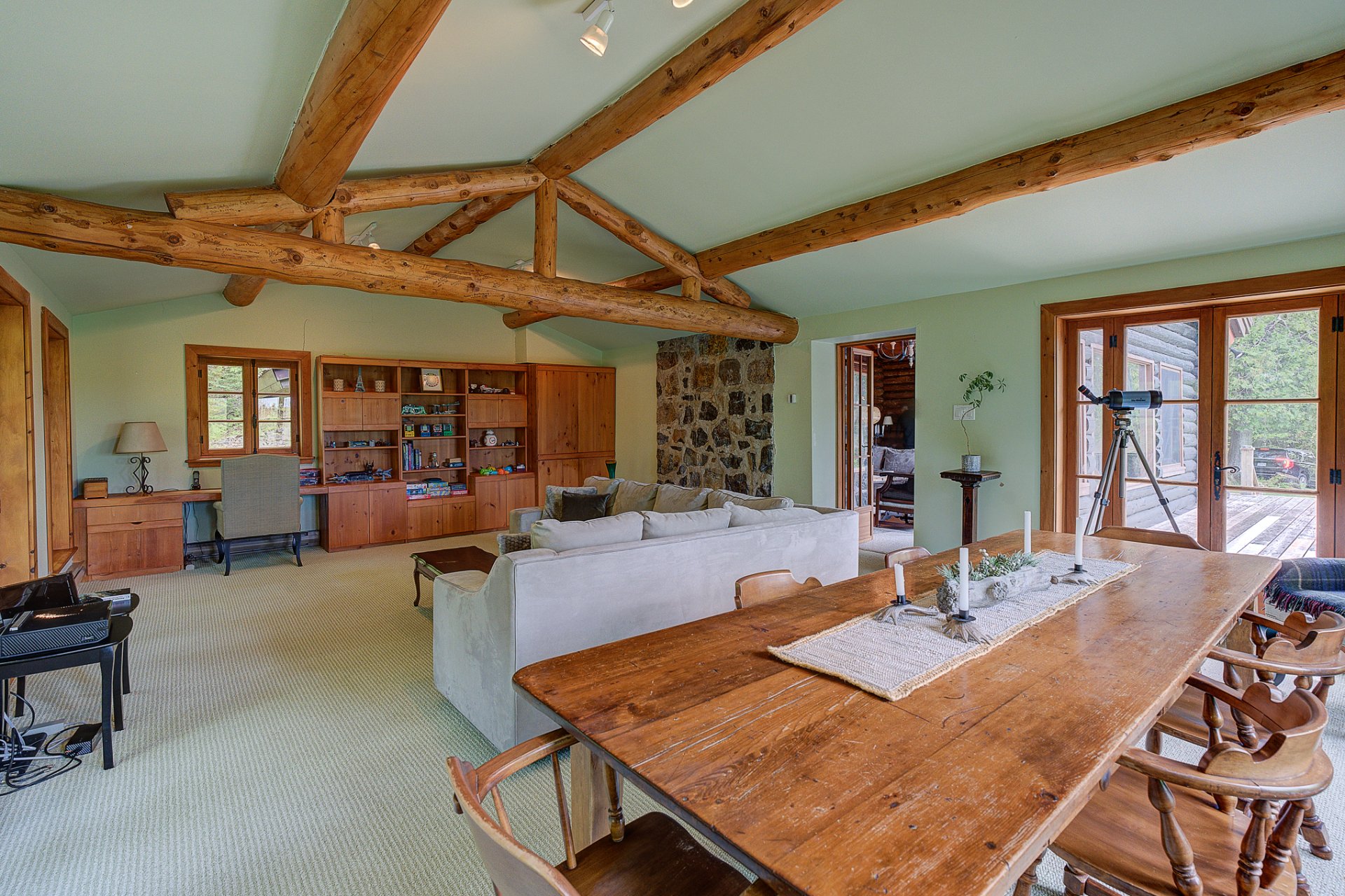 La propriété comprend trois chambres, deux salles de bains, une jolie cuisine au style champêtre, ainsi qu'un mudroom pratique pour faciliter les retours de plein air. Une grande salle familiale lumineuse, dotée d'une salle à manger, offre un espace de vie supplémentaire pour recevoir, se détendre ou profiter de la vue sur la nature environnante.