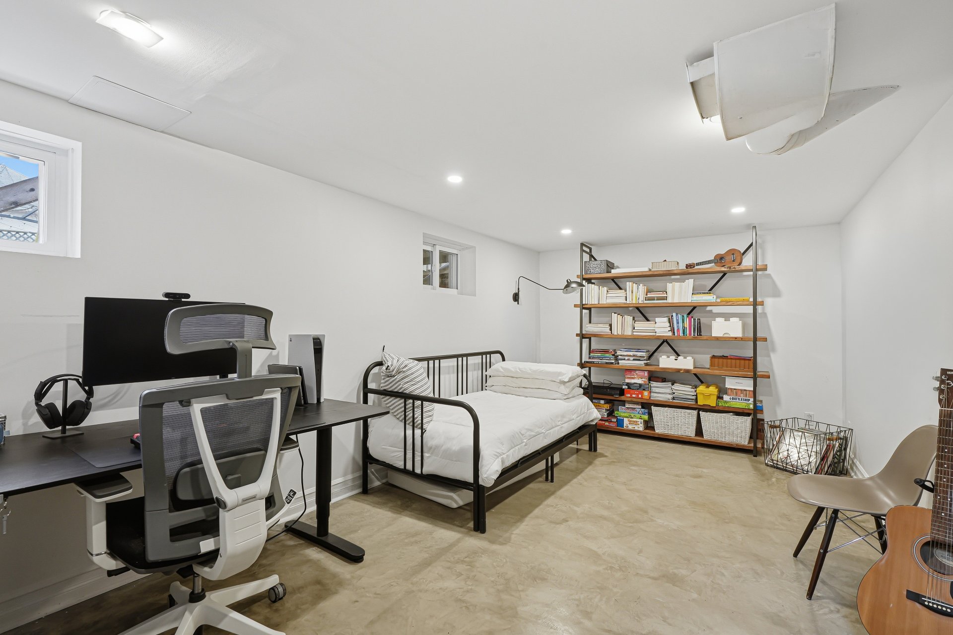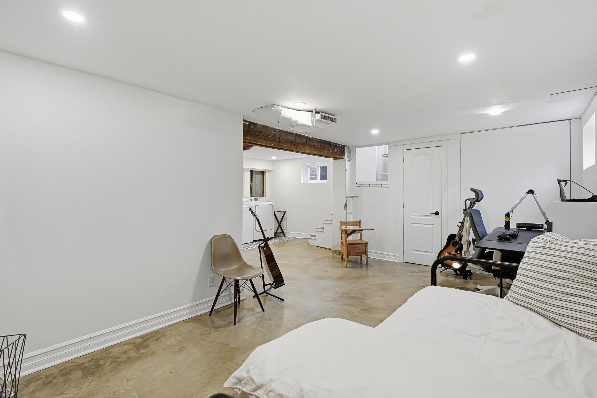 - Le sous-sol, entièrement rénové en 2022, constitue un atout indéniable : une spacieuse salle familiale à l'agréable plancher de béton chauffant offrant la possibilité d'aménager aisément une 4e chambre, ainsi qu'une salle de bain et un espace lavage.