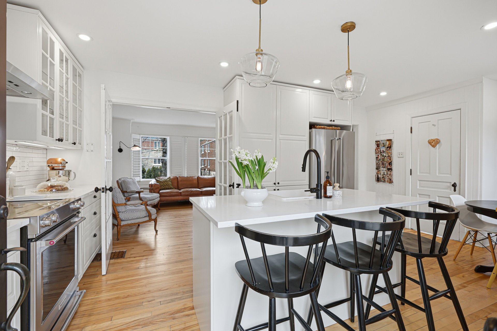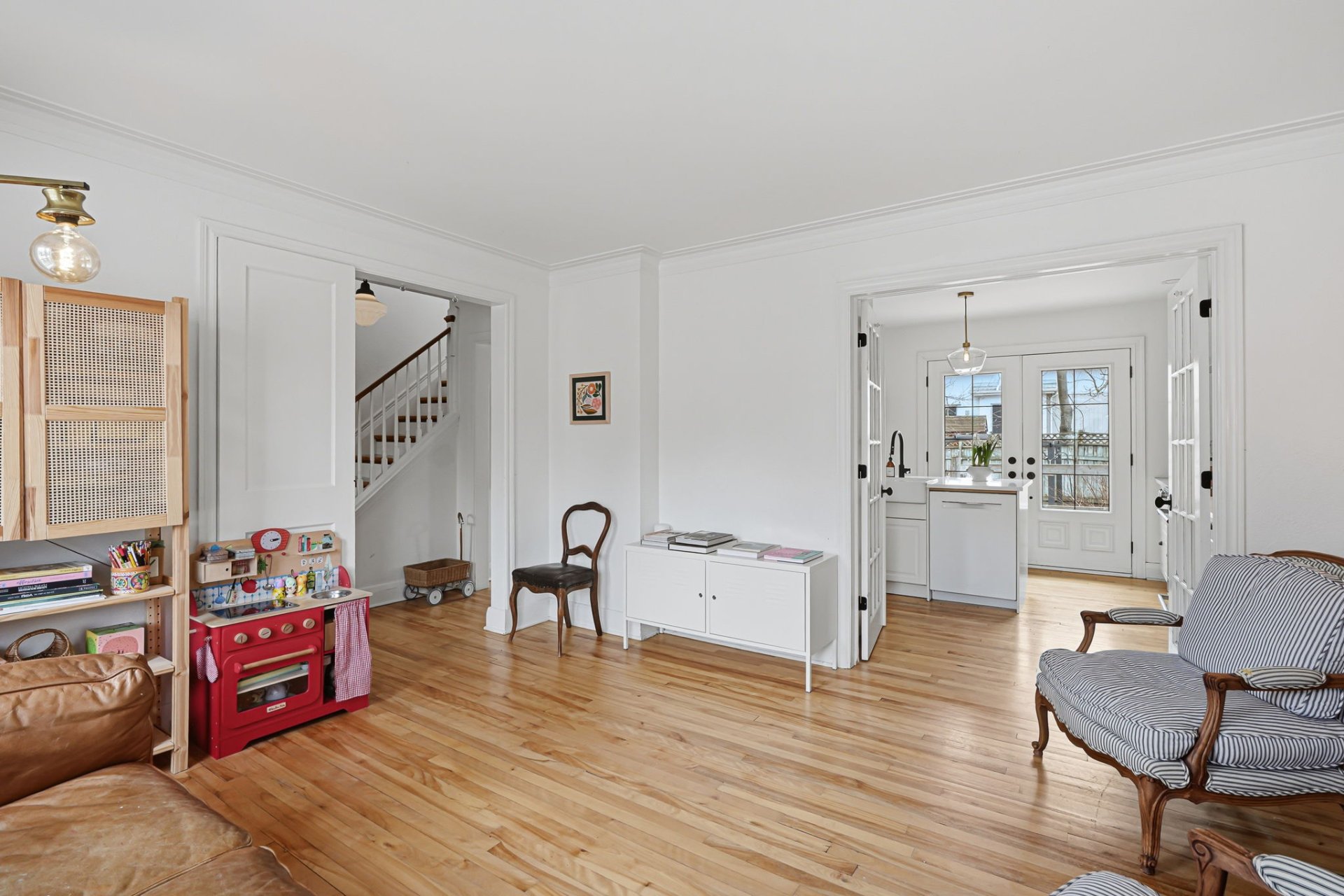 - L'aire de vie du rez-de-chaussée propose une élégante cuisine avec salle à manger et accès direct à la terrasse, ainsi qu'un salon aux volumes appréciables. L'ensemble est baigné de lumière naturelle grâce à une fenestration abondante.