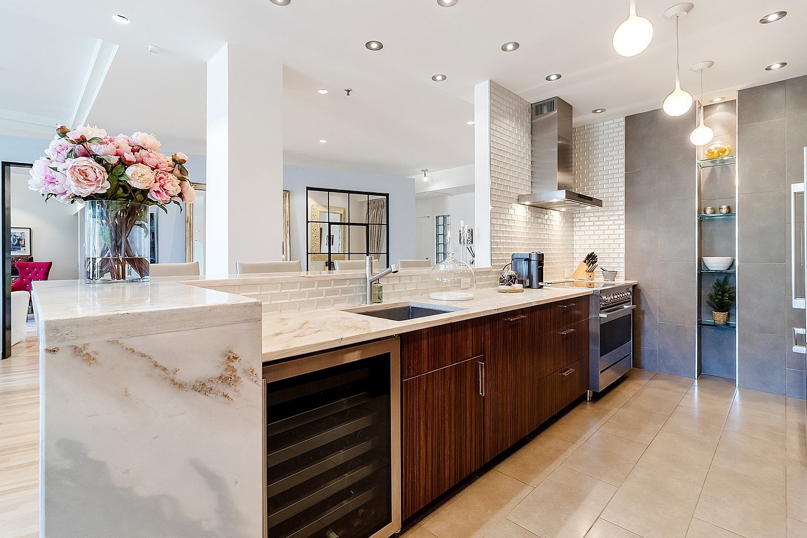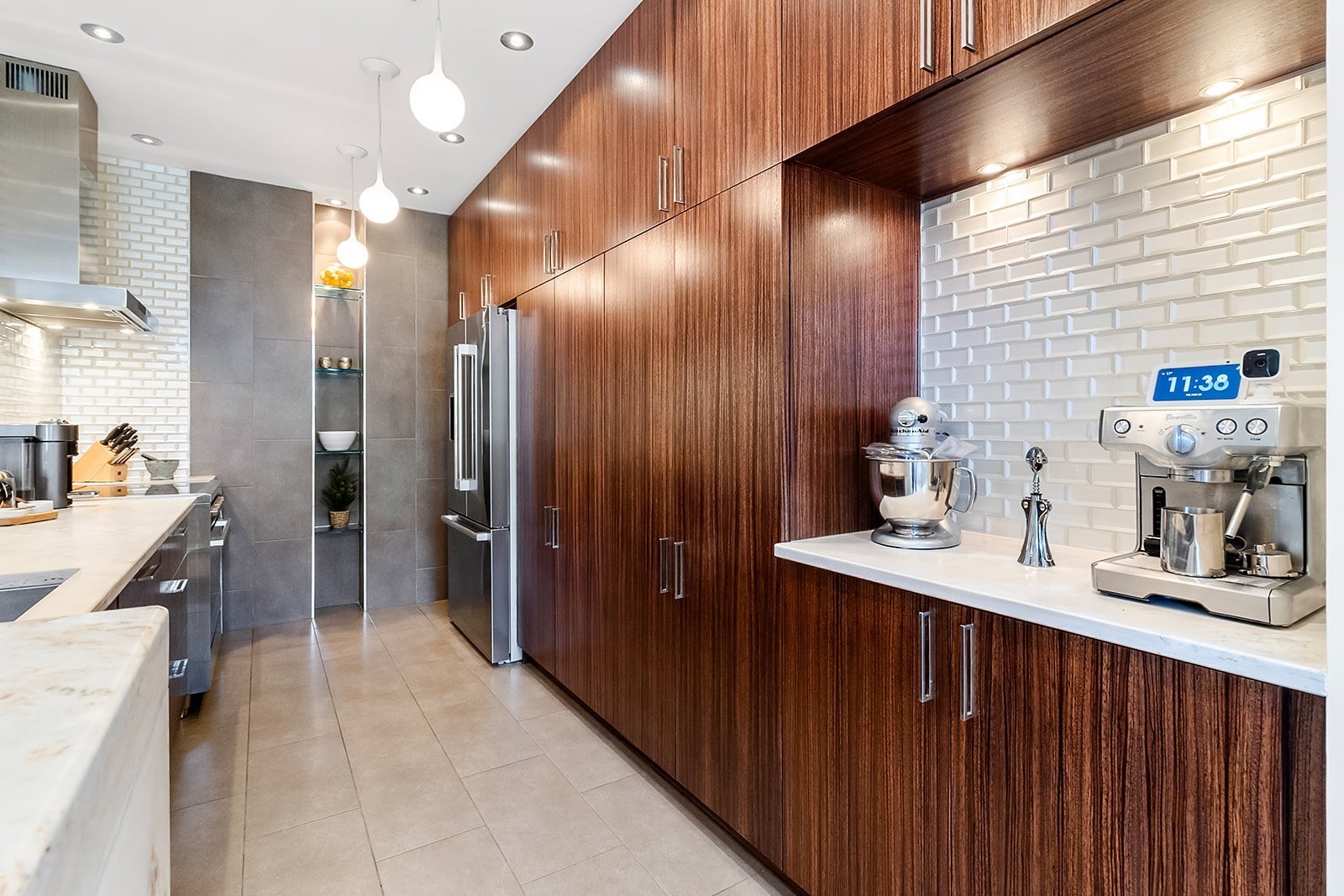 - Persiennes en bois, réfrigérateur à vin, réfrigérateur BOSCH, cuisinière FISHER & PAYKAL, lave-vaisselle BOSCH, laveuse, sécheuse LG.