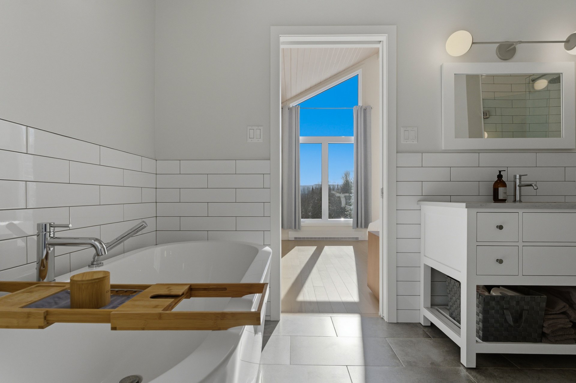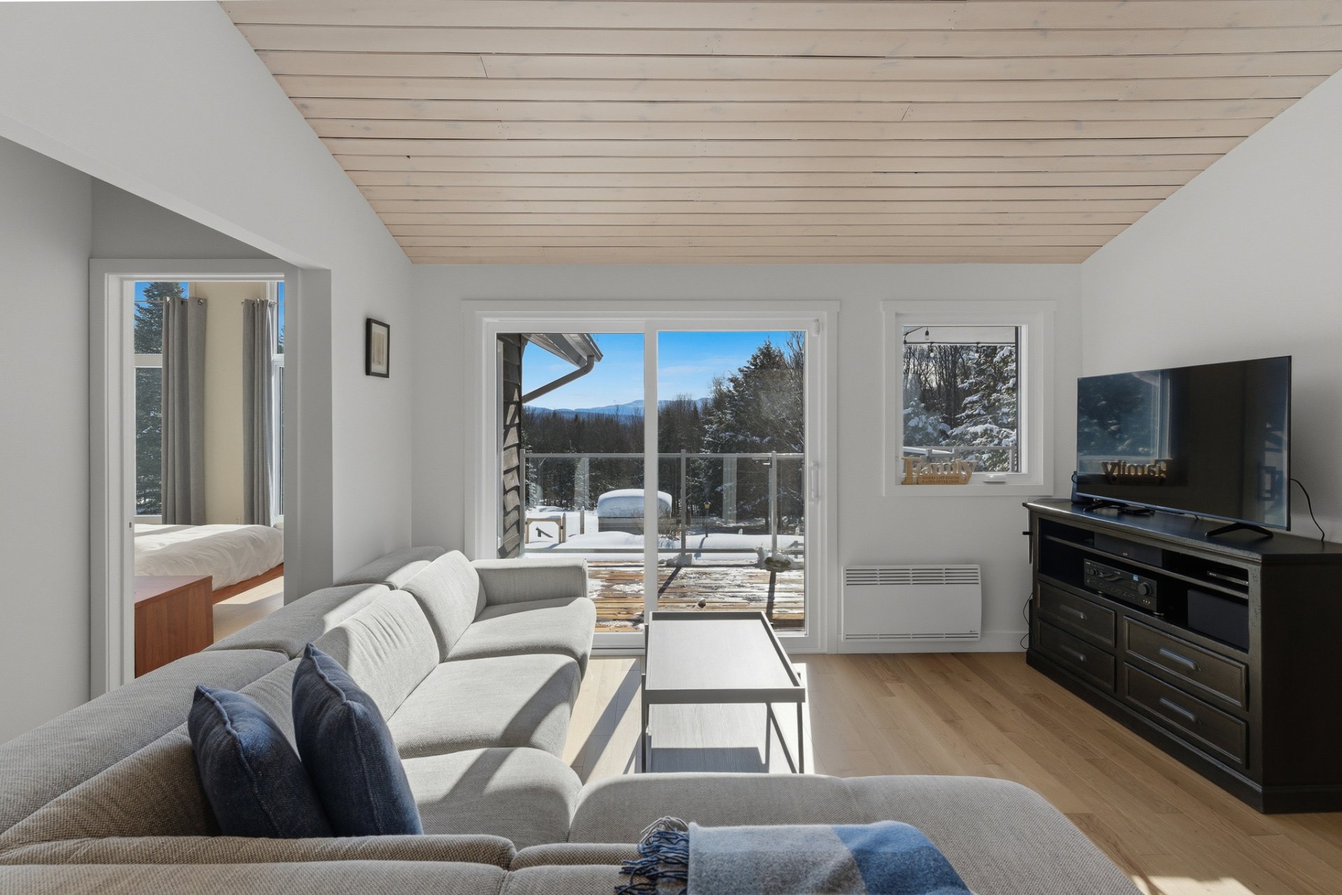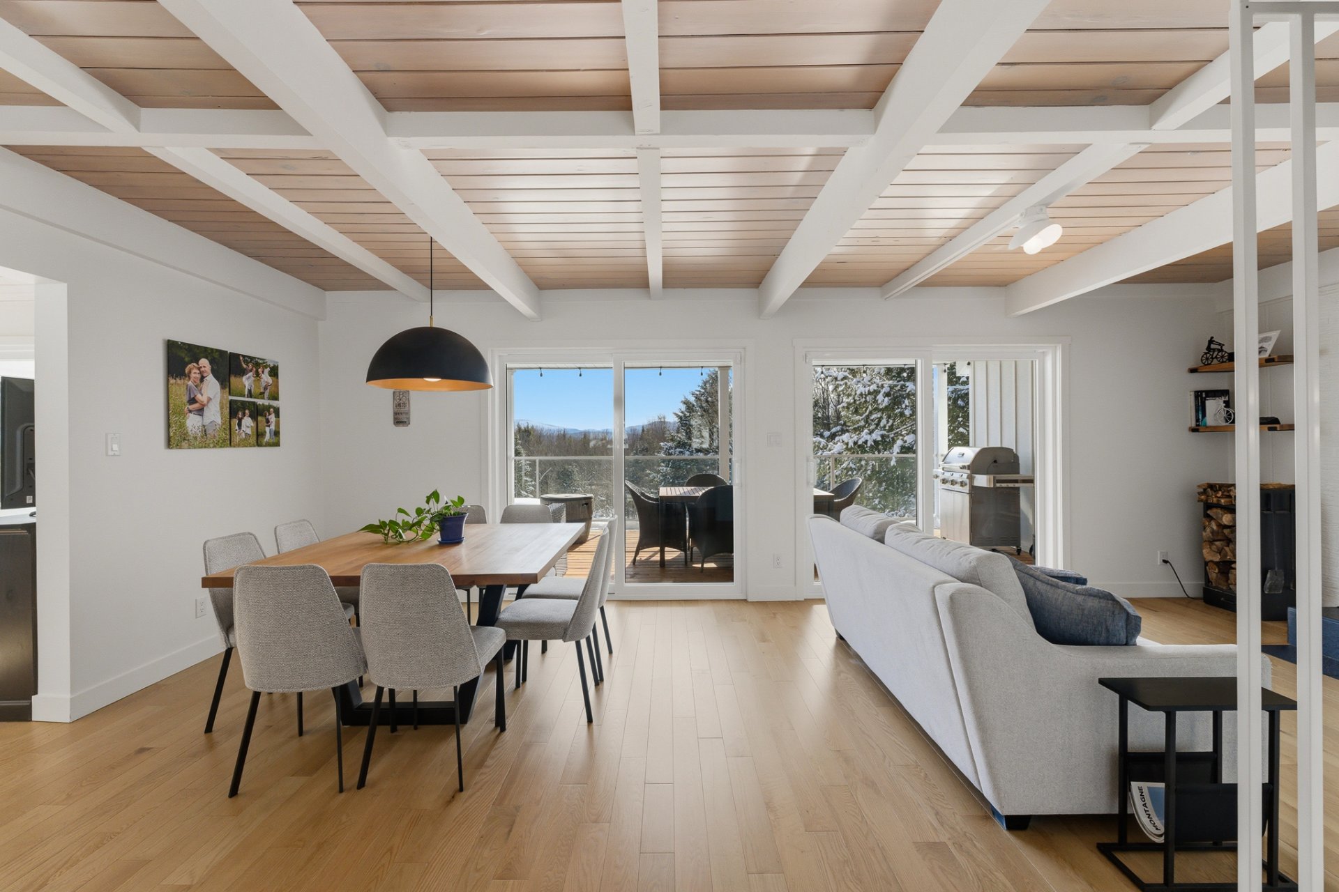Transformée en profondeur en 2022, cette propriété conjugue caractère et modernité avec élégance. Dès les premiers pas à l'intérieur, la lumière s'impose. Les plafonds habillés de bois blanchi, les planchers de chêne blanc, les volumes généreux et les ouvertures sur les montagnes créent une atmosphère invitante. Orientée plein sud, munie d'une fenestration abondante, la maison capte le soleil du matin au soir et offre un panorama grandiose sur les Montagnes Vertes.