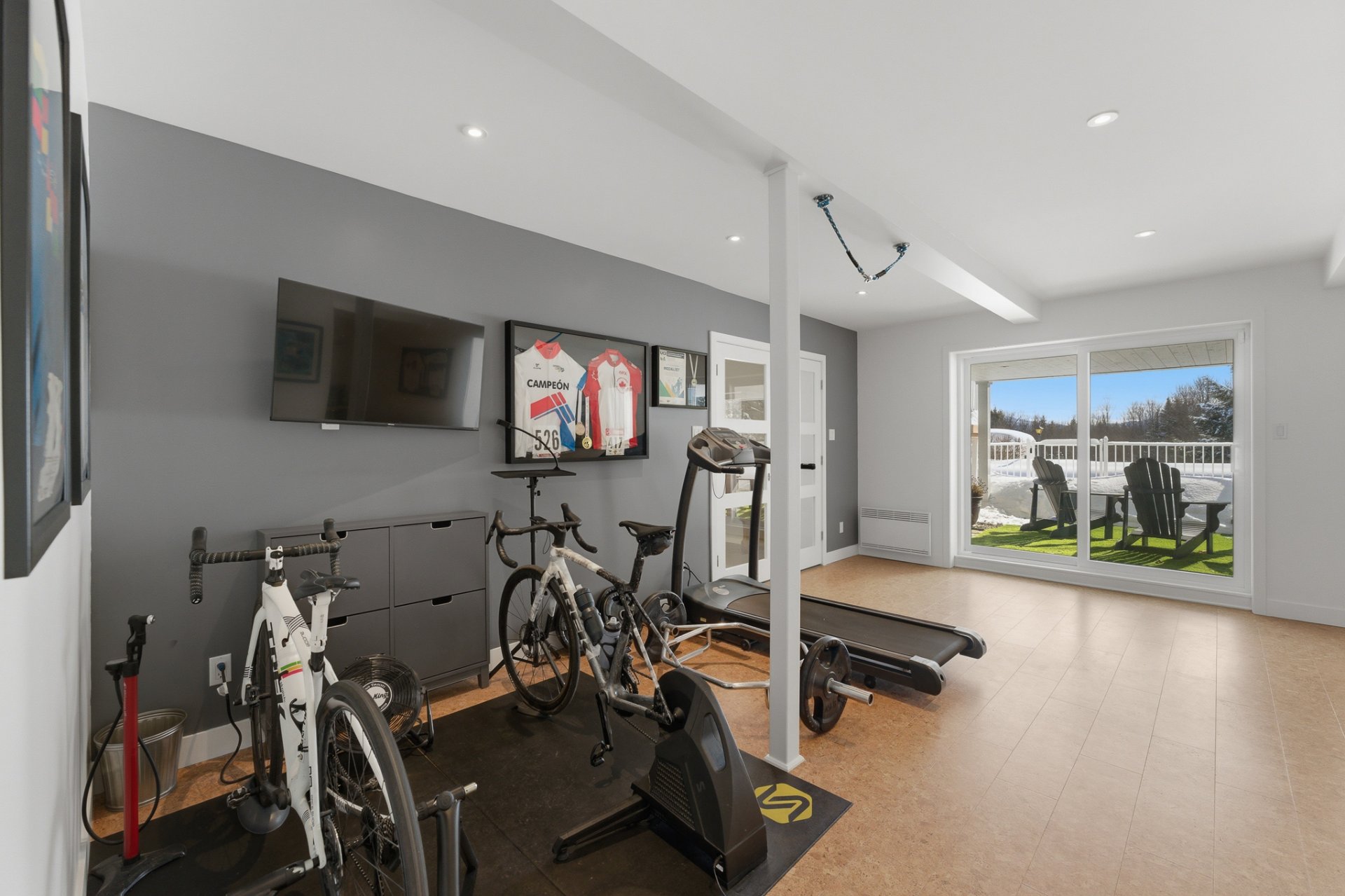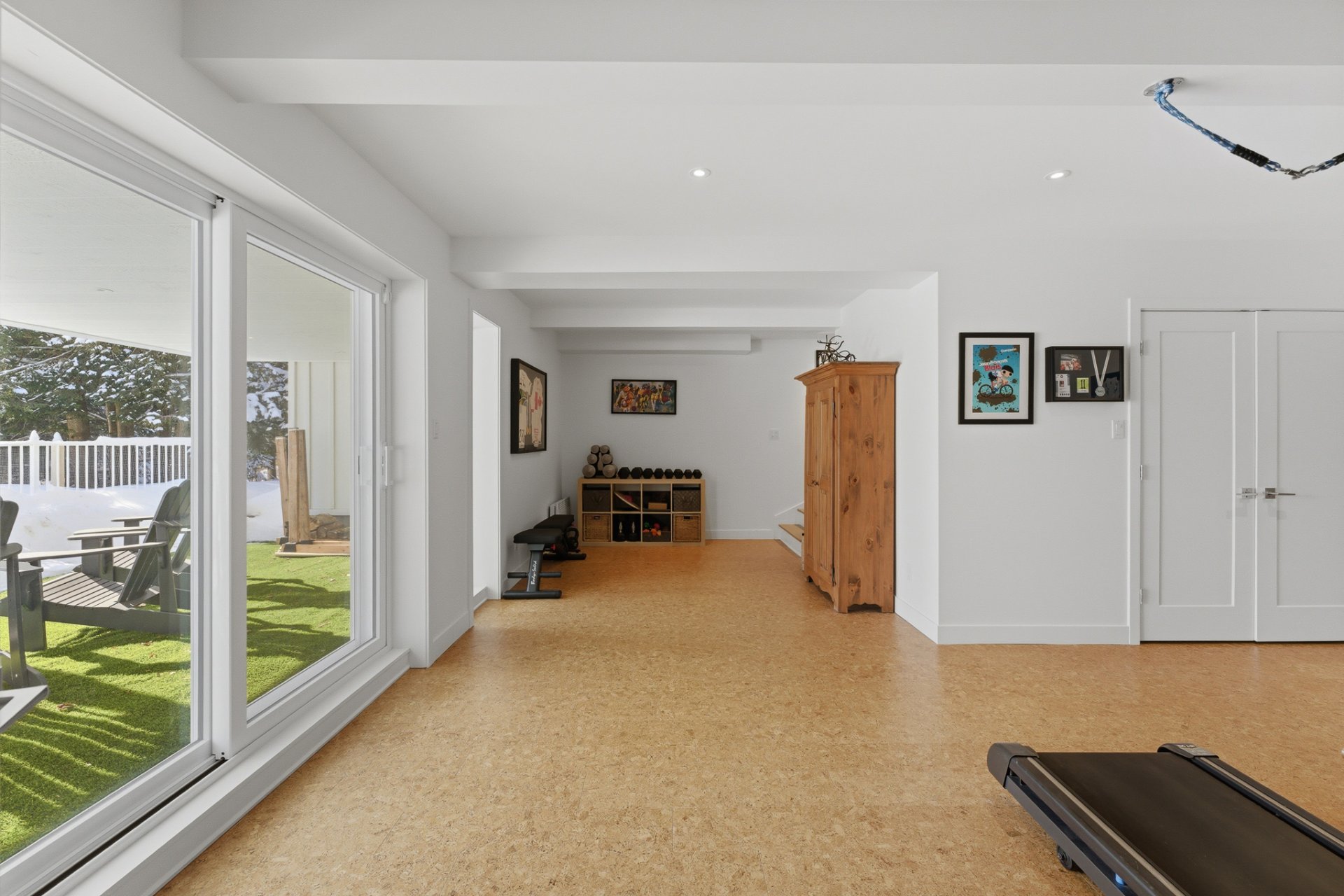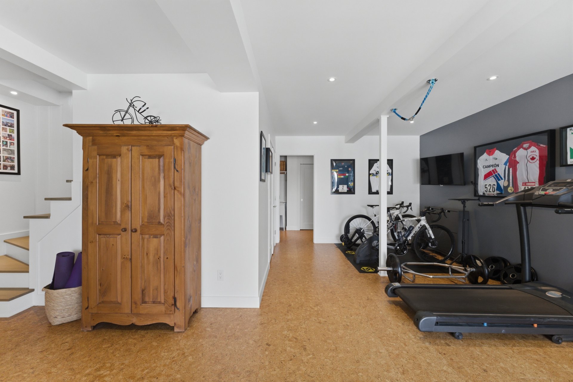 Au rez-de-jardin, se trouvent un vaste gym, la salle de lavage, une grande salle familiale aménagée d'une cuisine d'appoint, une 3ème chambre, un bureau et une salle de bains, l'endroit parfait pour accueillir famille et invités en toute intimité. Une entrée de type mudroom mène à la cour arrière.