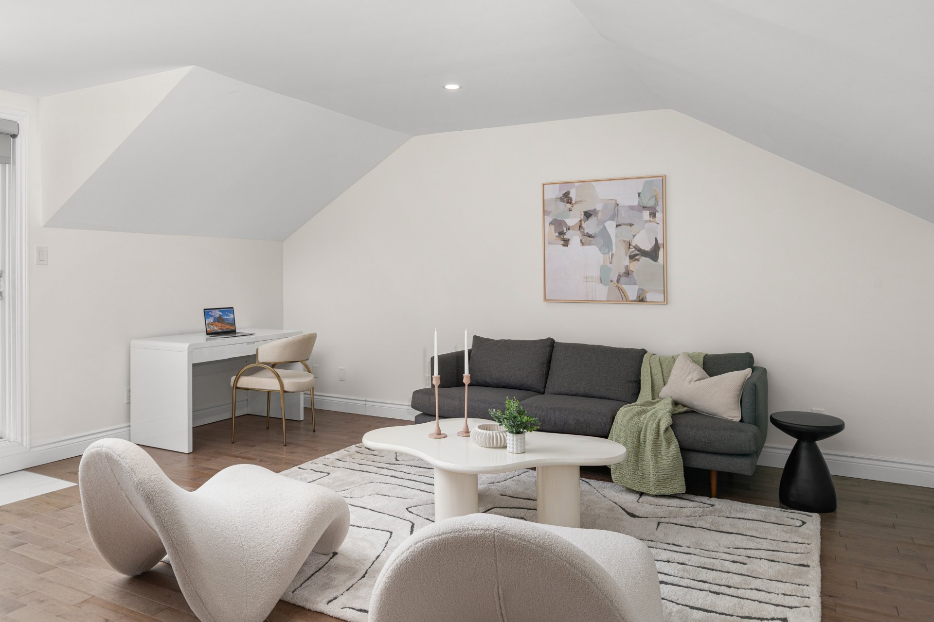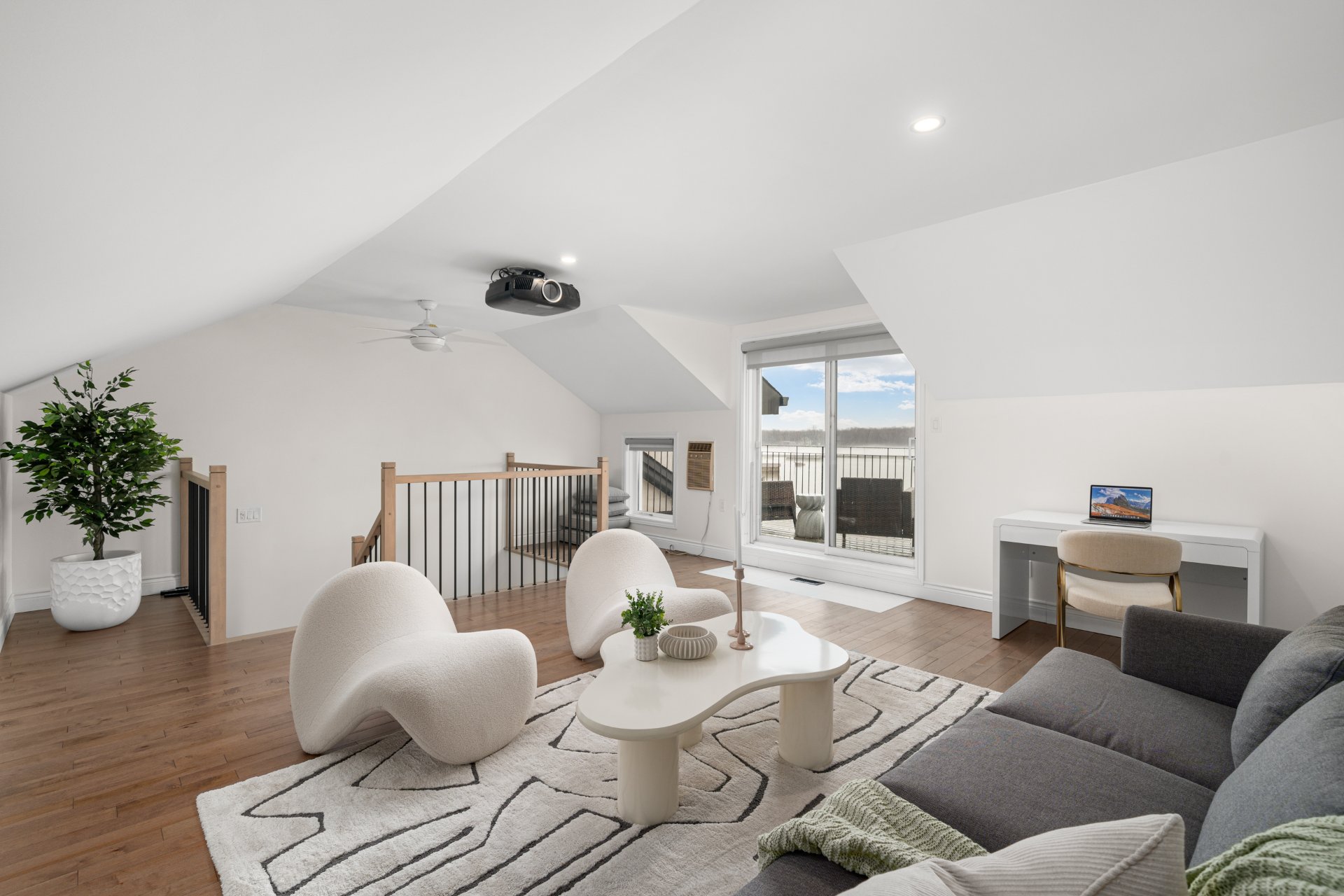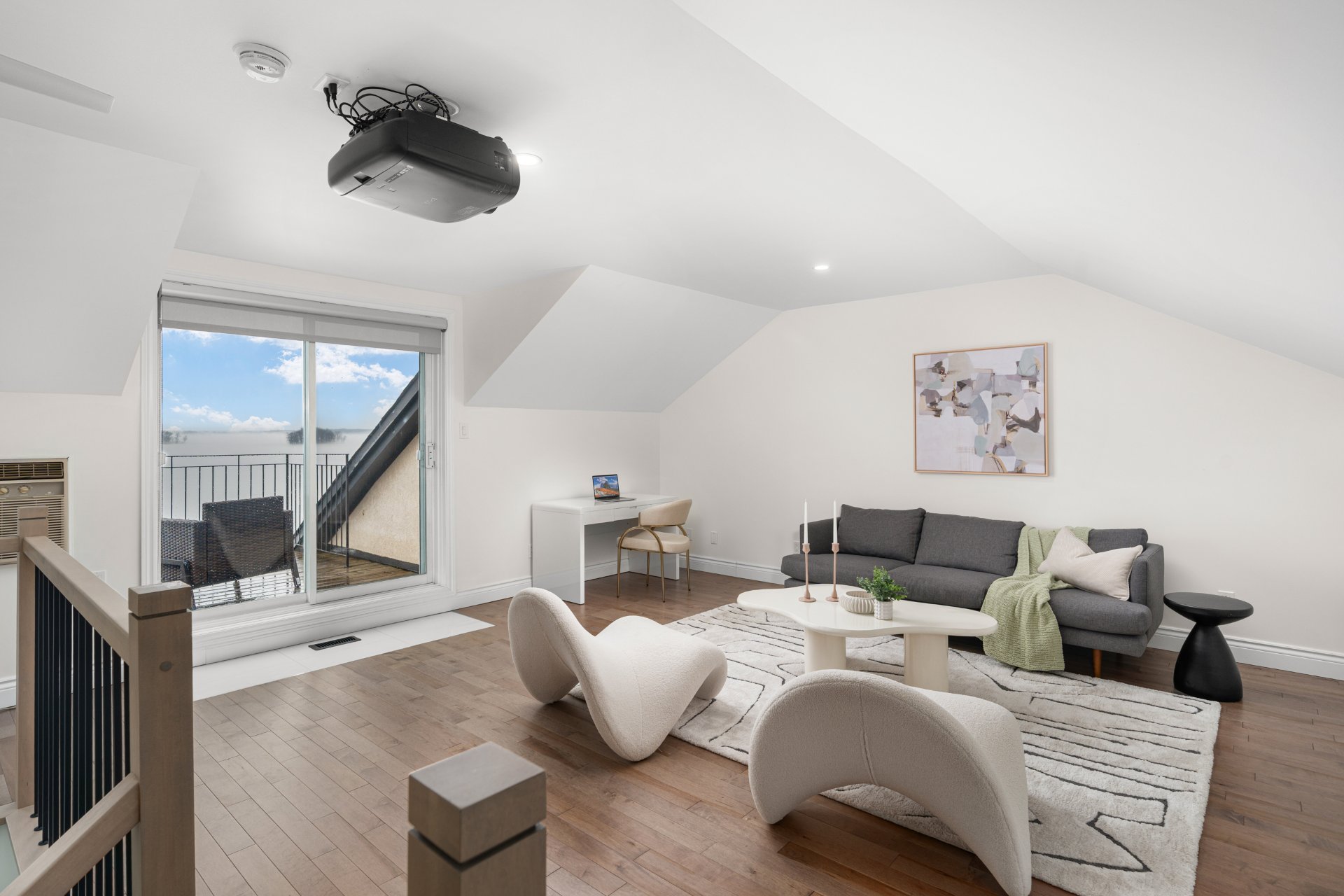 Le troisième étage offre un vaste espace à aire ouverte avec un deuxième balcon privé donnant sur l'eau, idéal comme salle familiale, bureau ou espace détente.