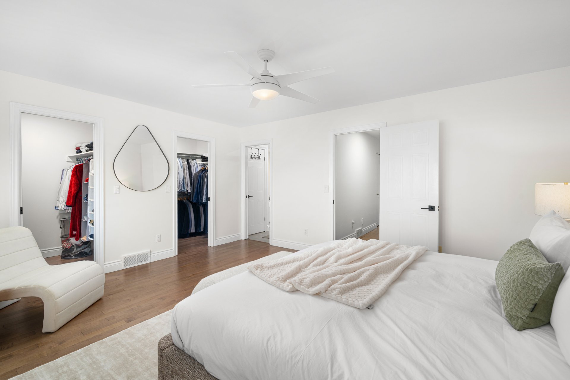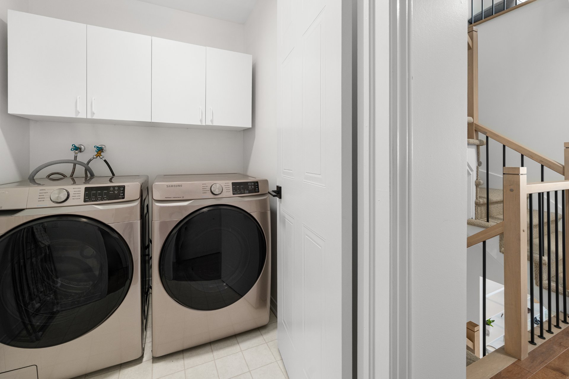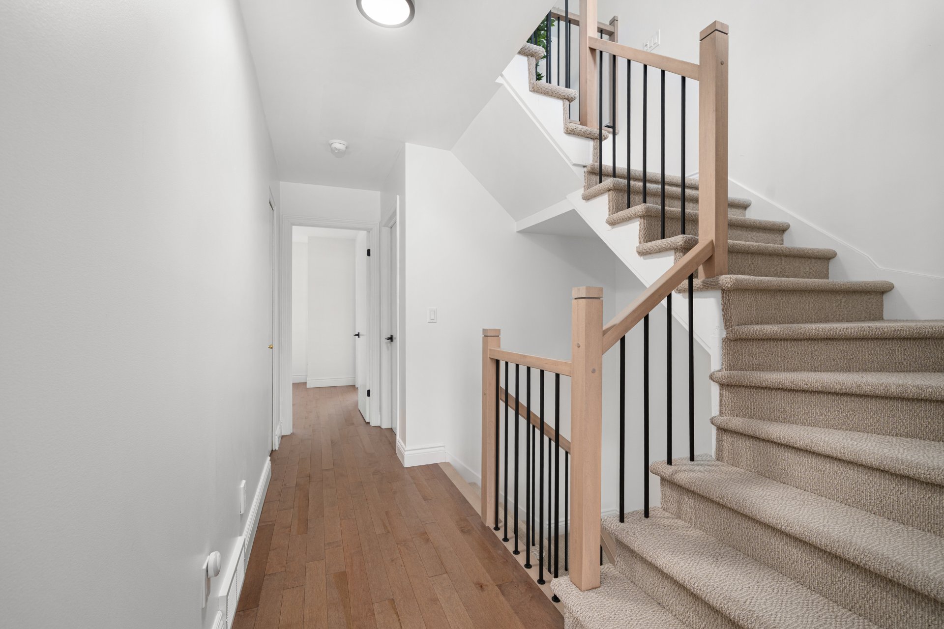 Le sous-sol comprend une troisième chambre avec salle de bains attenante, une pièce dédiée à l'exercice pouvant servir d'espace polyvalent, ainsi qu'un accès direct au garage, un espace vestibule pratique et de nombreux rangements.