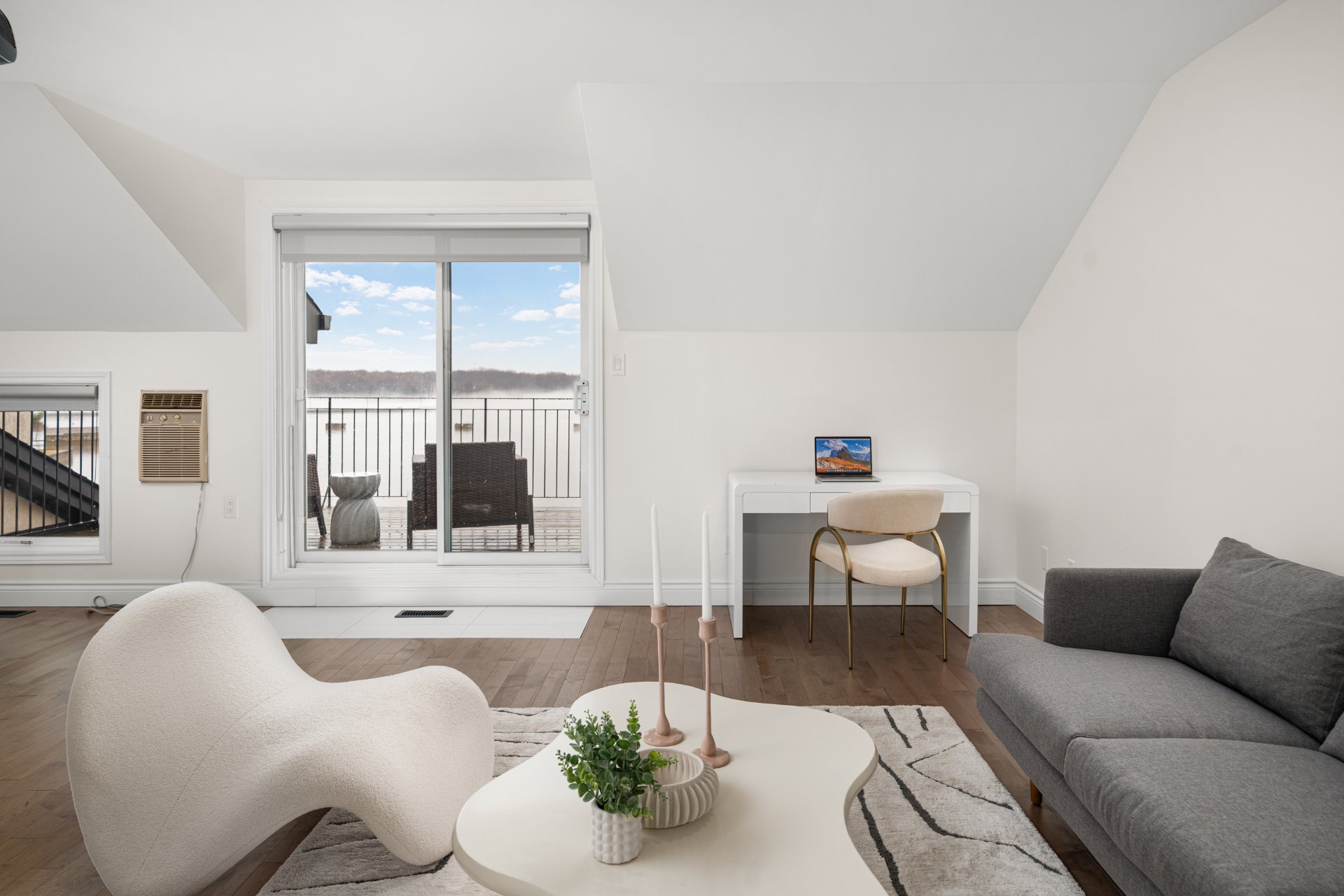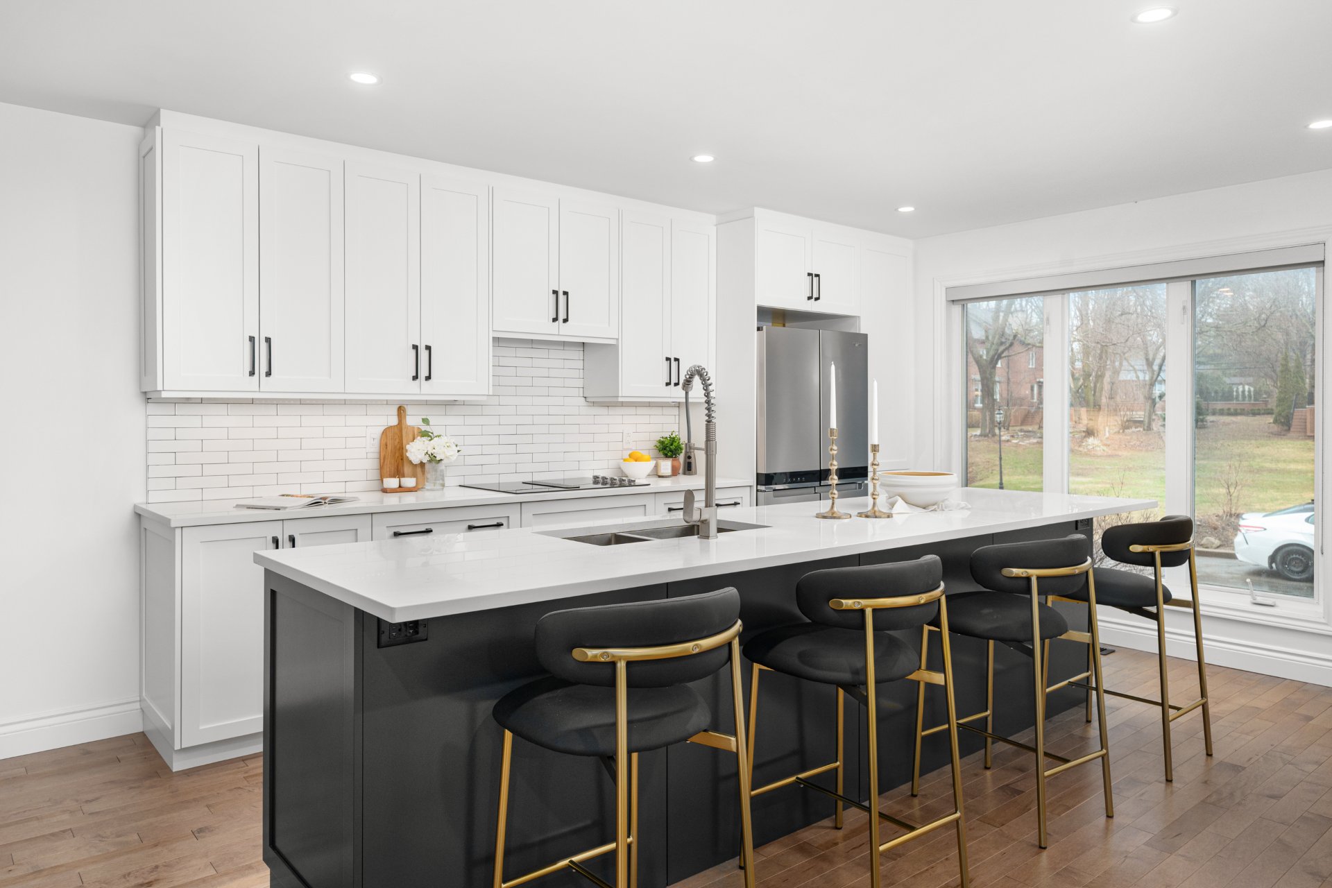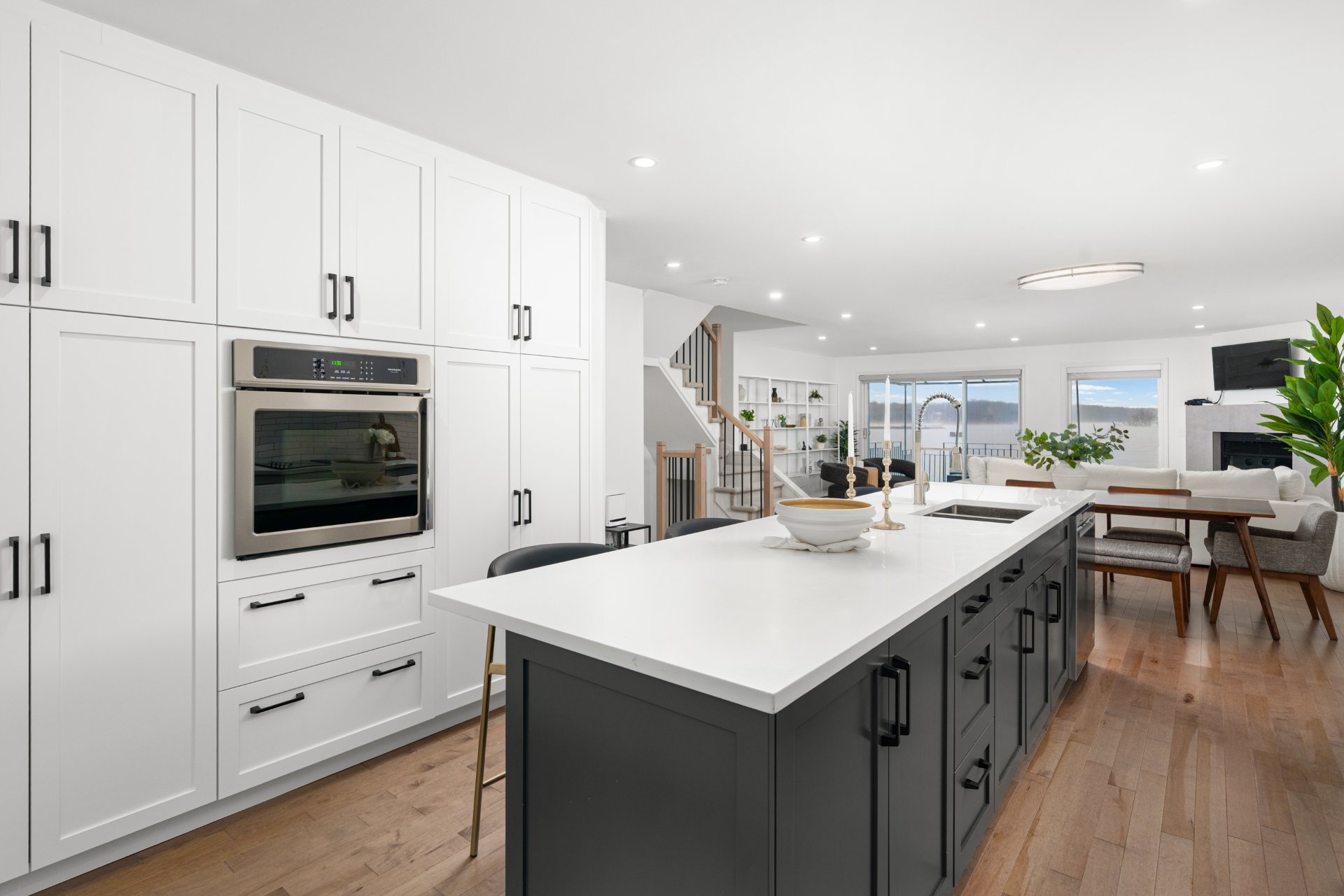 Le rez-de-chaussée s'ouvre sur des espaces de vie lumineux et accueillants, parfaits pour la vie quotidienne et les réceptions. La cuisine rénovée propose des finitions actualisées et une configuration fonctionnelle centrée autour d'un impressionnant îlot de 10 pieds, ouverte sur les aires de repas et de séjour. De grandes fenêtres et portes-patio maximisent la lumière naturelle et mettent en valeur la vue sur l'eau, tandis qu'un balcon privé prolonge l'espace vers l'extérieur.