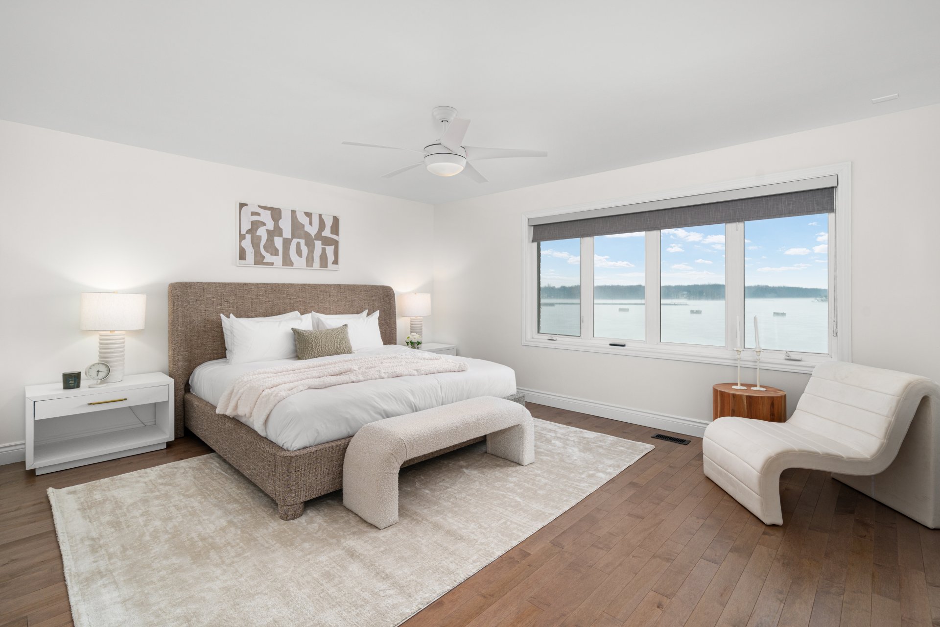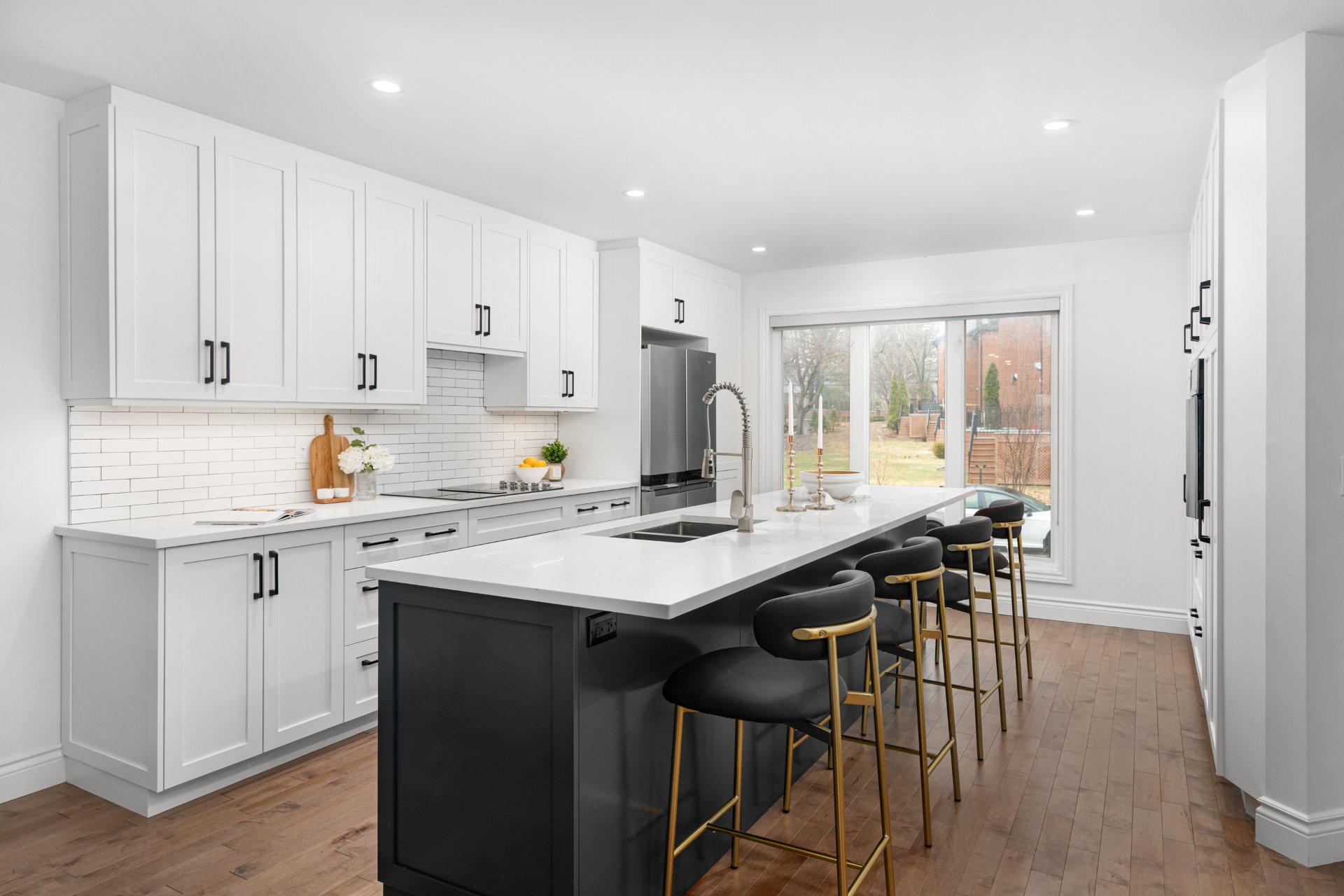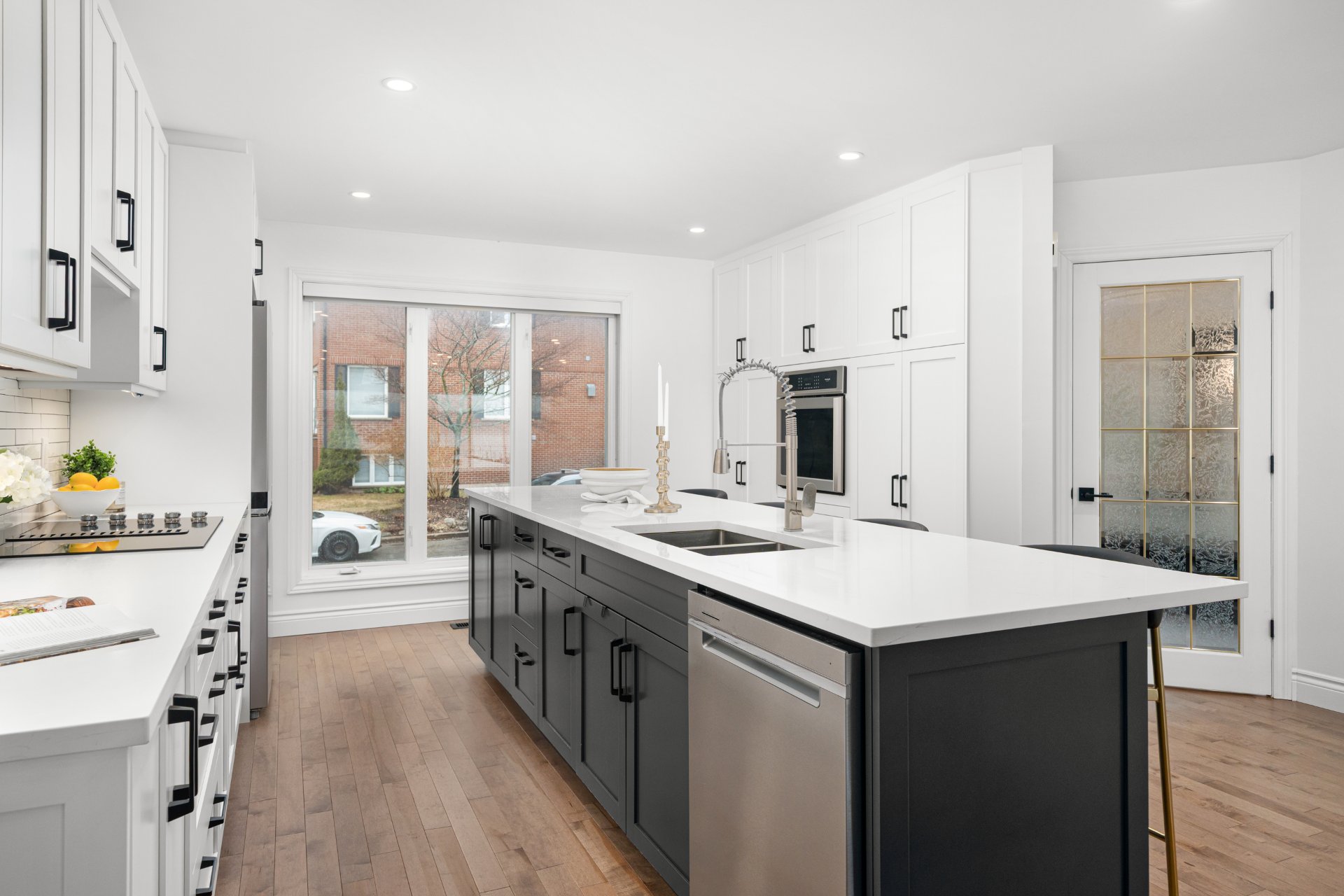 Le rez-de-chaussée s'ouvre sur des espaces de vie lumineux et accueillants, parfaits pour la vie quotidienne et les réceptions. La cuisine rénovée propose des finitions actualisées et une configuration fonctionnelle centrée autour d'un impressionnant îlot de 10 pieds, ouverte sur les aires de repas et de séjour. De grandes fenêtres et portes-patio maximisent la lumière naturelle et mettent en valeur la vue sur l'eau, tandis qu'un balcon privé prolonge l'espace vers l'extérieur.