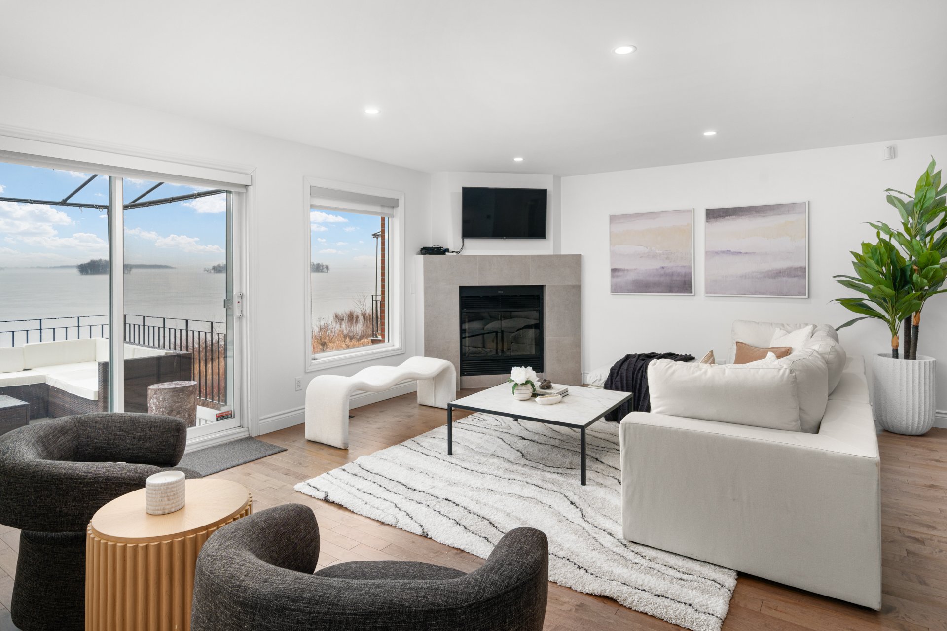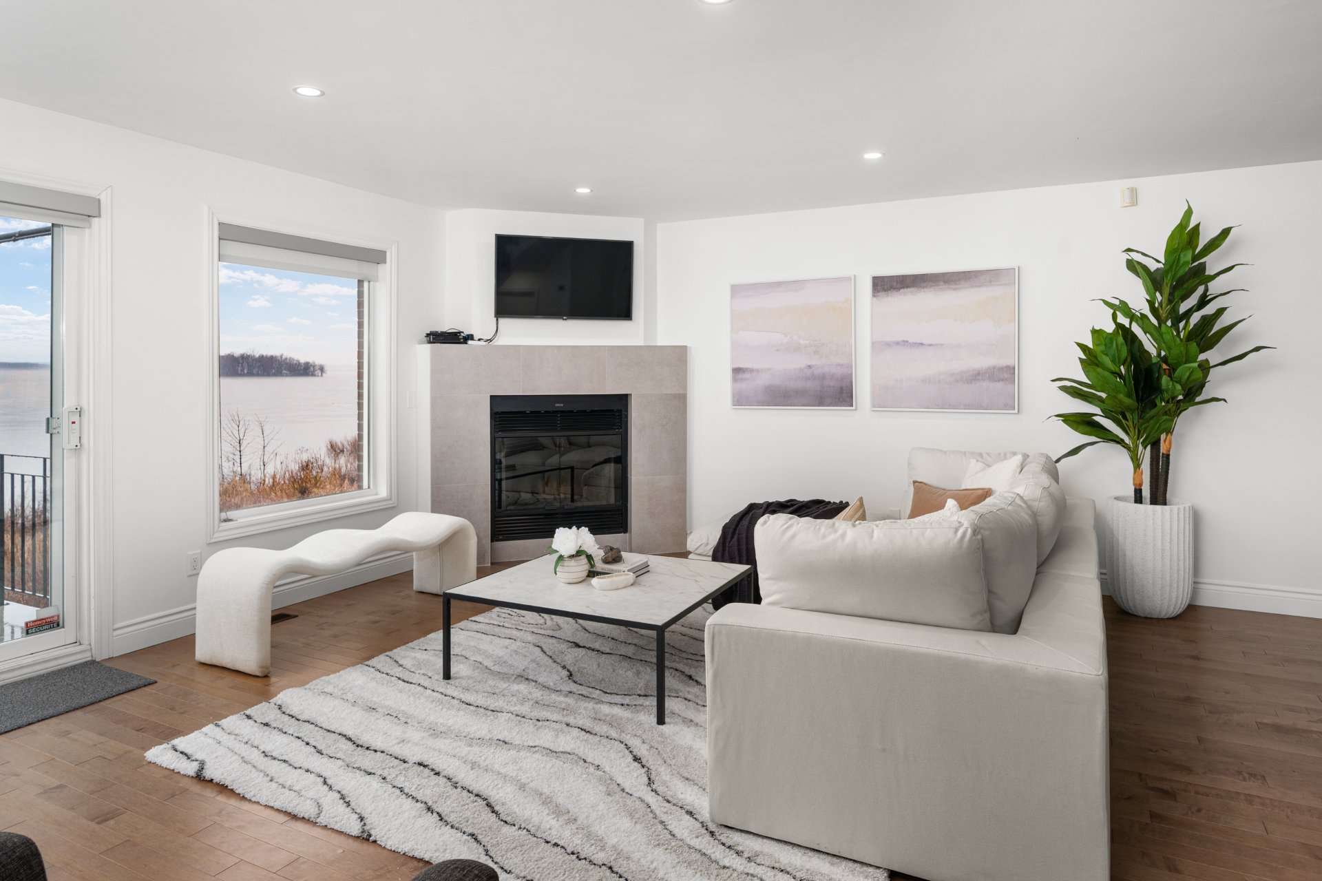 Élégante maison de ville riveraine sur 4 niveaux avec vue sur le lac des Deux Montagnes et accès direct à l'eau. Cette unité centrale offre 2+1 chambres et 3+1 salles de bains, chaque chambre avec sa salle de bains attenante. Cuisine rénovée avec îlot central de 10 pieds, salle de bains principale repensée et nouveaux planchers de bois franc. Le 2e étage comprend la suite principale avec vue sur l'eau, une 2e chambre avec salle de bains attenante et la salle de lavage. Le 3e étage propose un espace ouvert avec 2e balcon privé face à l'eau. À distance de marche du village de Sainte-Anne, avec accès rapide au train, REM et autoroutes.