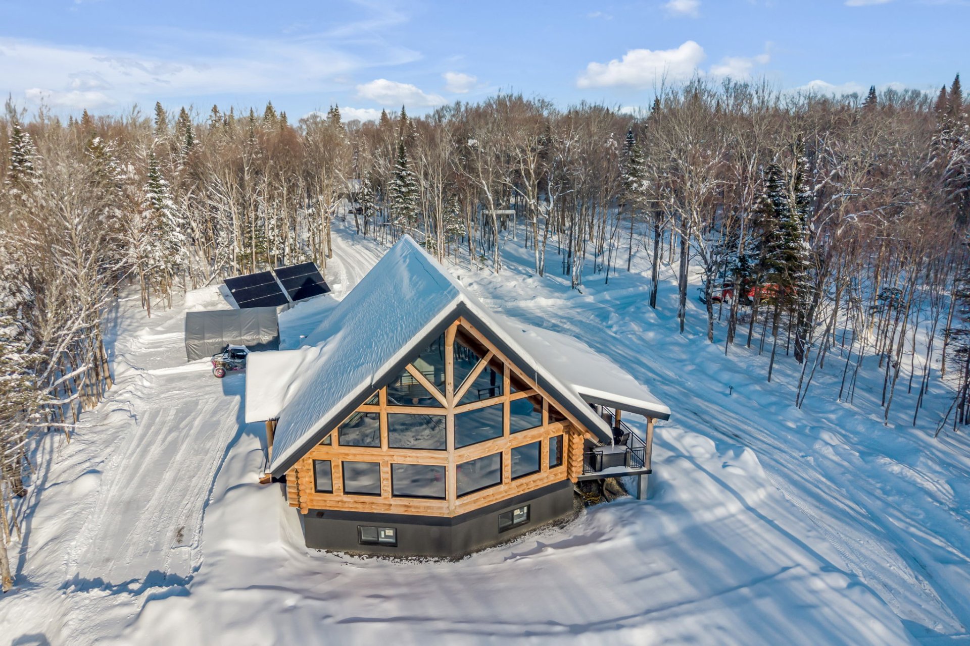 Domaine privé exceptionnel de plus de 25,45 acres, situé à quelques minutes du Mont-Saint-Anne. Magnifique chalet en bois rond offrant une luminosité incomparable grâce à sa fenestration panoramique et son architecture grandiose. Propriété 100 % autonome alimentée par panneaux solaires, dotée de domotique complète et de 16 caméras de surveillance. Terrain forestier avec rivière, sentiers aménagés, possibilités d'érablière et zones de chasse. Garage triple + salle de toilettage. Intimité absolue, tranquillité et nature à perte de vue. Un site unique alliant luxe, autonomie et exclusivité. Entièrement meublé et équipé. Une opportunité rare ...