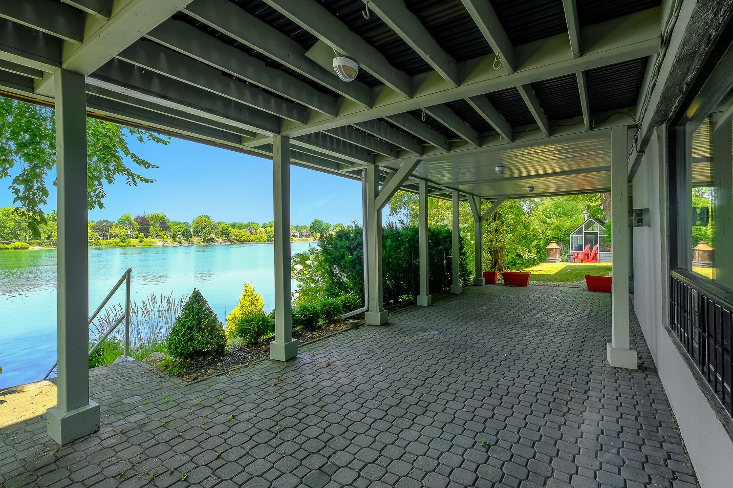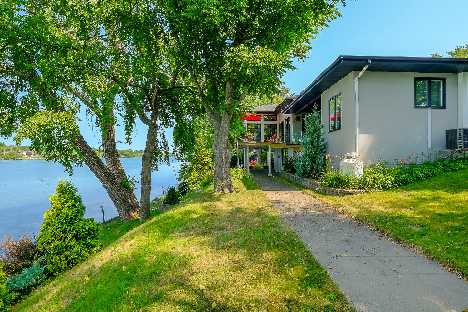 Profitez d'une vaste terrasse surélevée avec panneaux vitrés, parfaite pour admirer les couchers de soleil sur l'eau. Le terrain paysager offre une intimité totale et une connexion directe avec la nature.