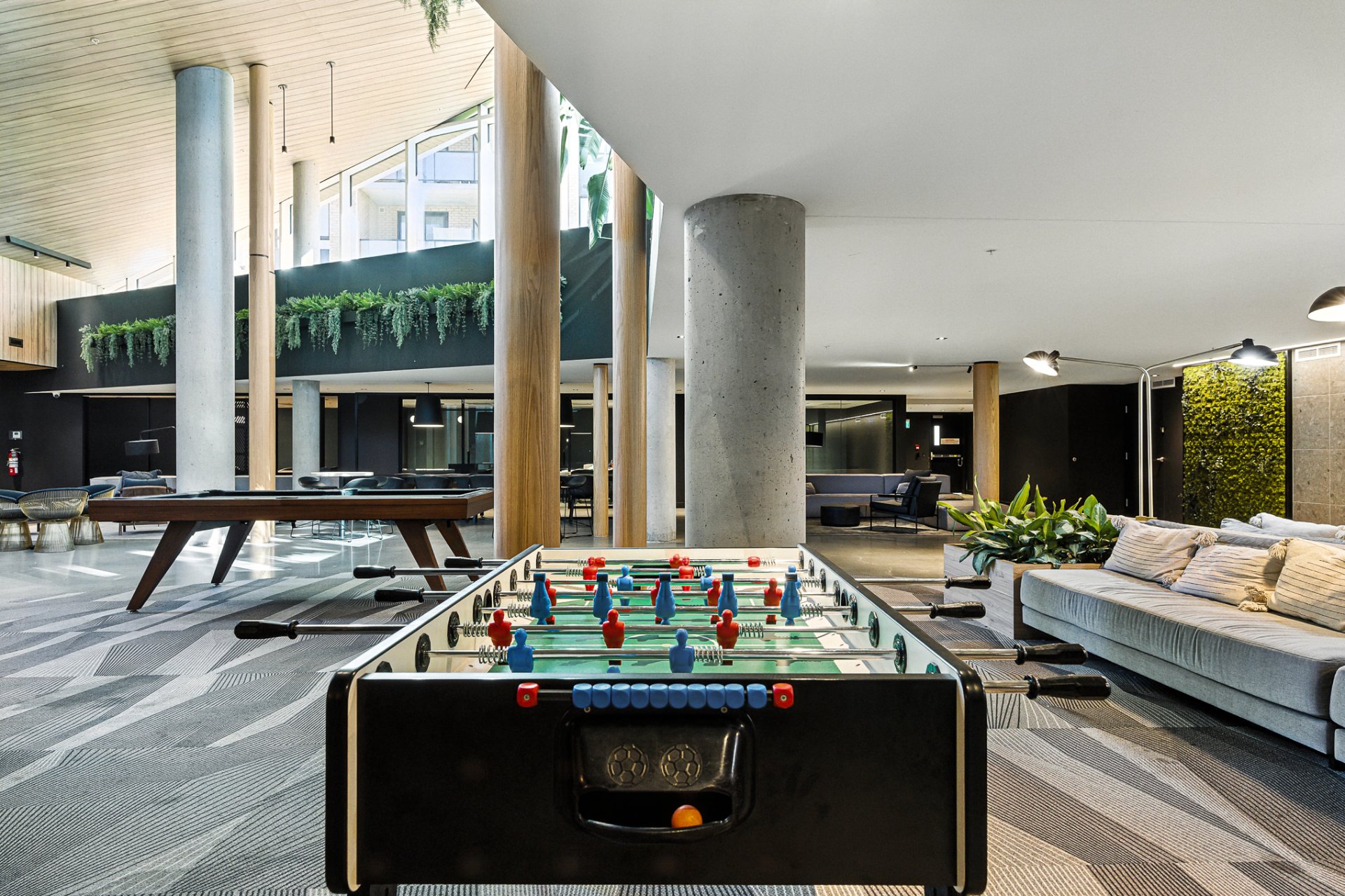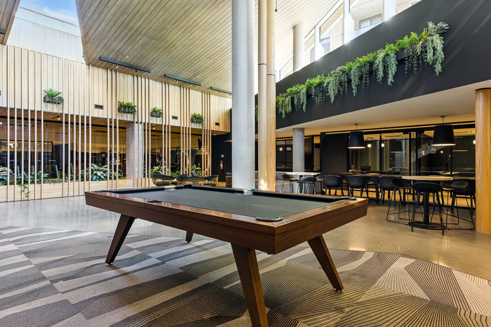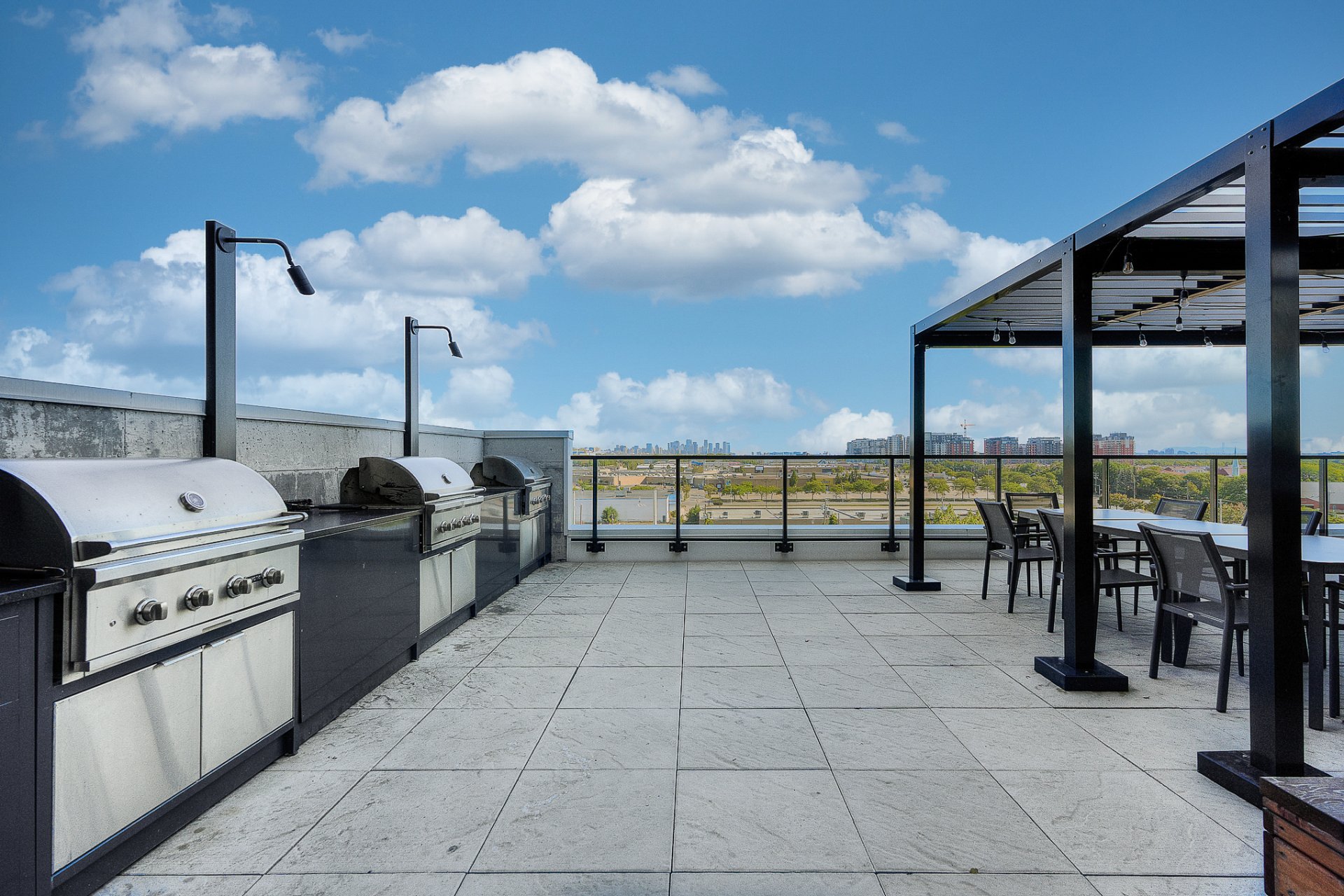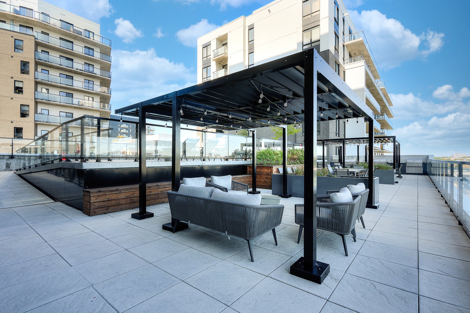 Profitez des commodités haut de gamme, qui distinguent ce projet : espaces communs exceptionnels, gym entièrement équipé, piscine extérieure sur le toit, allée de quilles, terrasse sur le toit avec BBQs et aires de détente, sans oublier un court de tennis pour les amateurs de sport.
